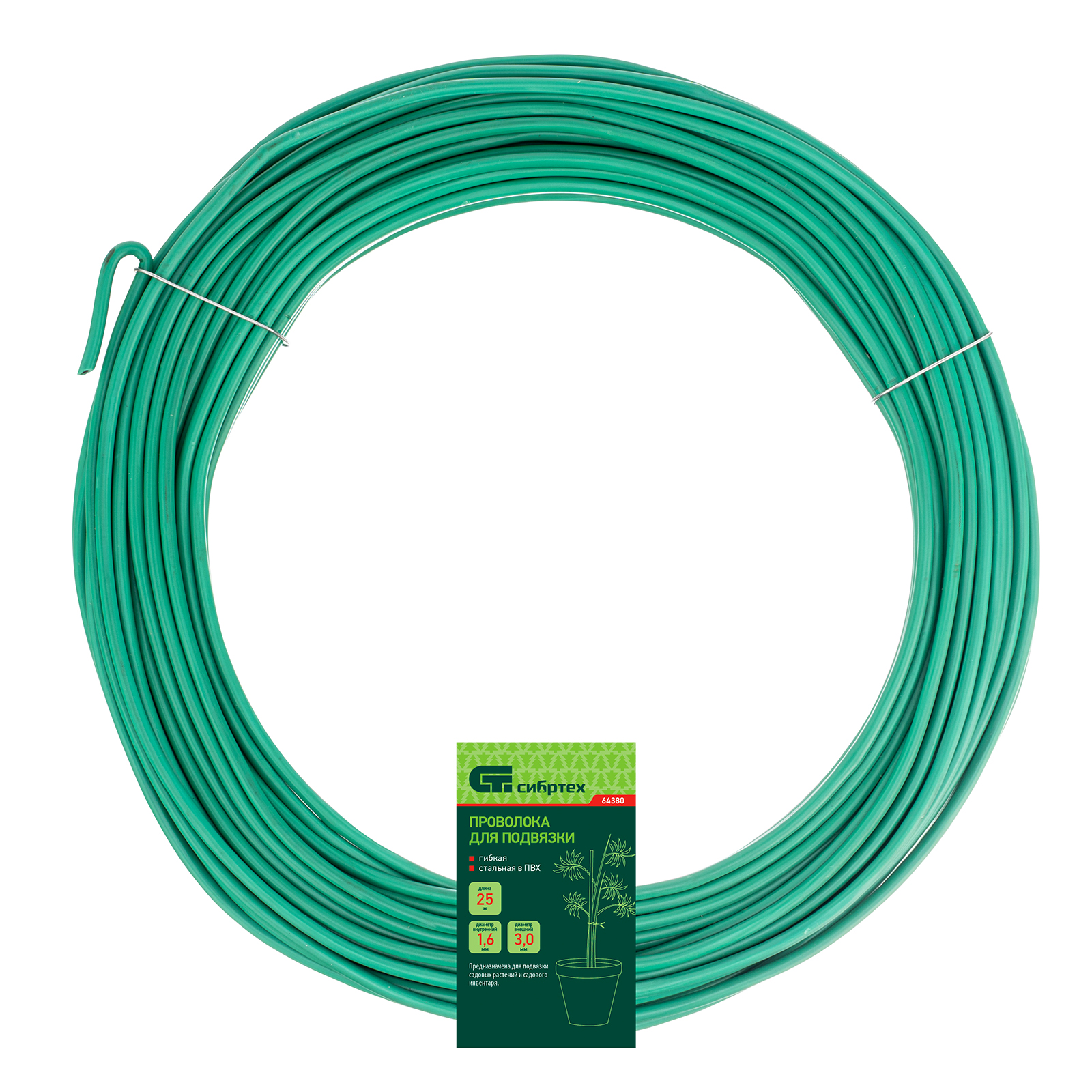 Проволока для подвязки, стальная в ПВХ (зеленый) 25 м, внутр. 1.6 мм / внеш. 3 мм Сибртех в Москве