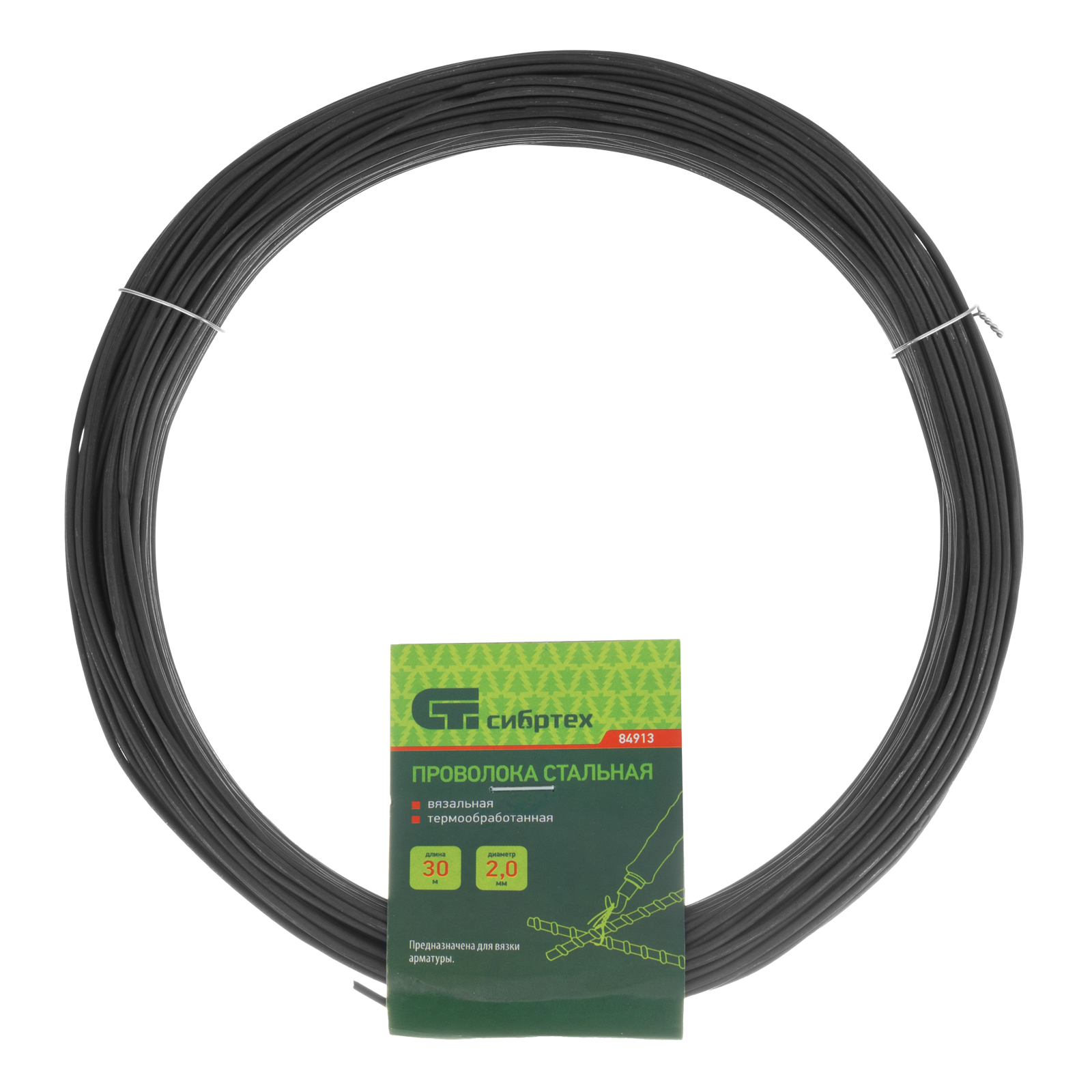 Проволока стальная 30 м, вязальная, термообработанная 2 мм Сибртех в Москве