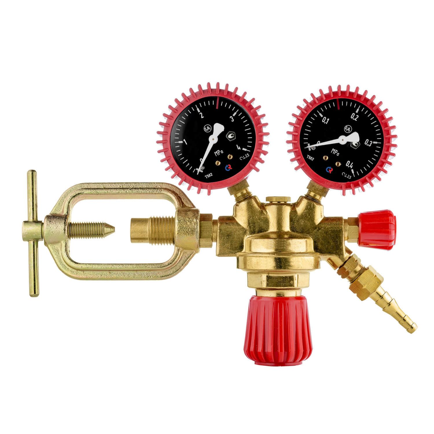 Редуктор с литым латунным корпусом. На редуктор установлены эргономичные задающие винты. Манометры дополнительно защищены резиновыми кожухами, которые предохраняют устройство от механических повреждений.