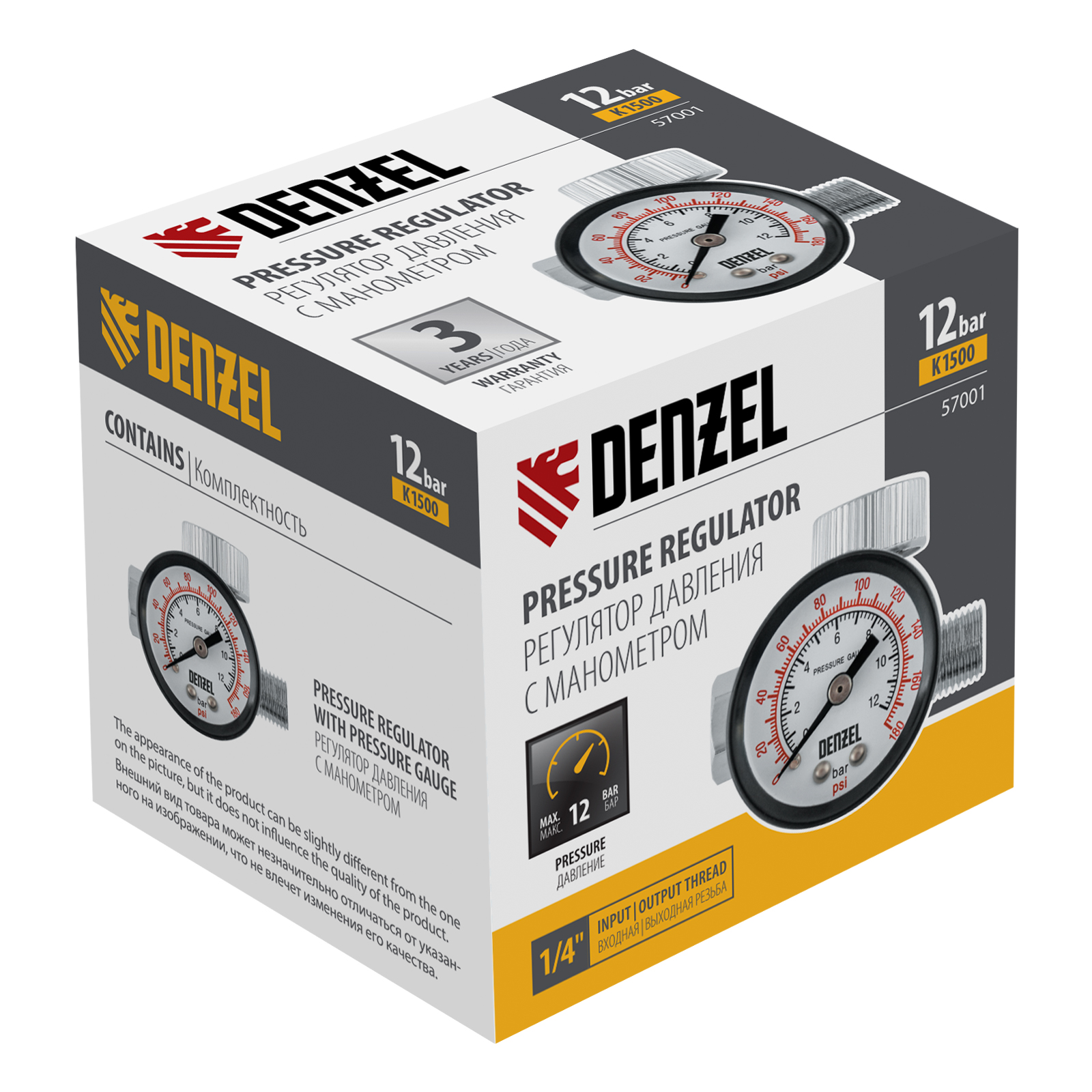Регулятор давления с манометром для краскораспылителя K1500, 12 бар, 1/4" Denzel в Москве