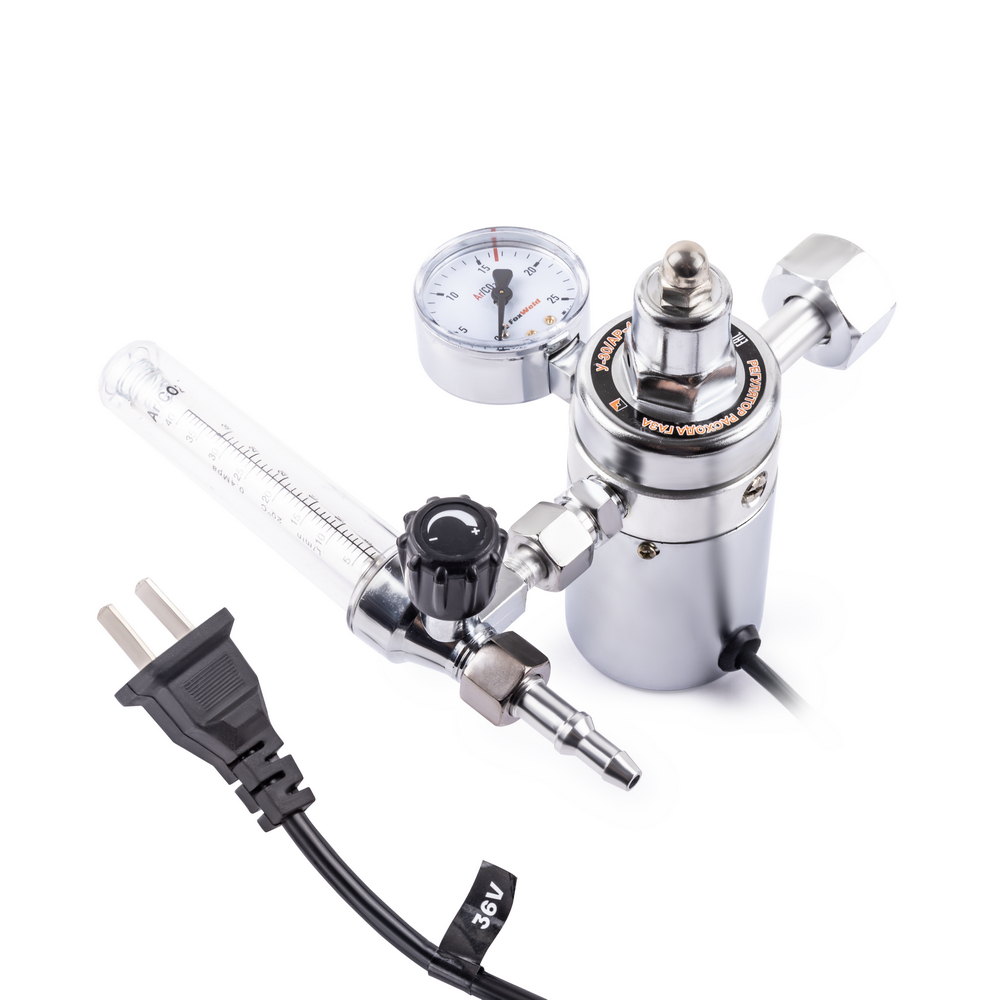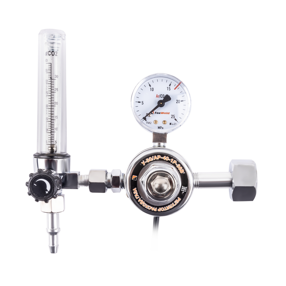 Регулятор расхода газа У-30/АР-40-1Р-36В с подогревателем на 36 Вольт предназначен для понижения давления на входе и регулировки расхода газа на выходе из баллона. Нагреватель газа нужен для предотвращения замерзания механизмов регулятора при больших расходах газа или при низких температурах окружающей среды. Корпус регулятора выполнен из алюминия, включает в себя манометр входного давления и ротаметр для регулировки уровня выходящего газа. Газовый регулятор поддерживает заданный расход в процессе сварочных работ, резки и пайки металлов, газового напыления.ВЫСОКАЯ ЭФФЕКТИВНОСТЬ: Газовый регулятор обеспечивает меньший расход рабочих газов при газосварочном процессе, поддерживает заданный уровень давления до окончания работы и экономит газ в баллоне.ВНЕШНИЕ РЕГУЛИРОВКИ: Регулятор имеет вентиль регулировки подачи газа. Для качественного выполнения газосварочных работ необходимо создать рабочую среду и контролировать расход газа, поступающий из баллона. Вентиль снижает или понижает поступающее давление - можно настроить необходимое рабочее давление на выходе и проконтролировать процесс с помощью манометра.ВСТРОЕННЫЙ МАНОМЕТР: Встроенный манометр давления на входе показывает давление поступающего из баллона газа. С помощью манометра удобно отслеживать уровень давления и задать необходимый объём для работы. Регулировка давления подачи газа осуществляется с помощью наружного вентиля.КОМПЛЕКТАЦИЯ: Регулятор расхода газа У-30/АР-40-1P-36В с подогревателем – 1 шт.; Индивидуальная упаковка – 1 шт.; Инструкция по эксплуатации – 1 шт.*Производитель оставляет за собой право менять комплектацию оборудования.