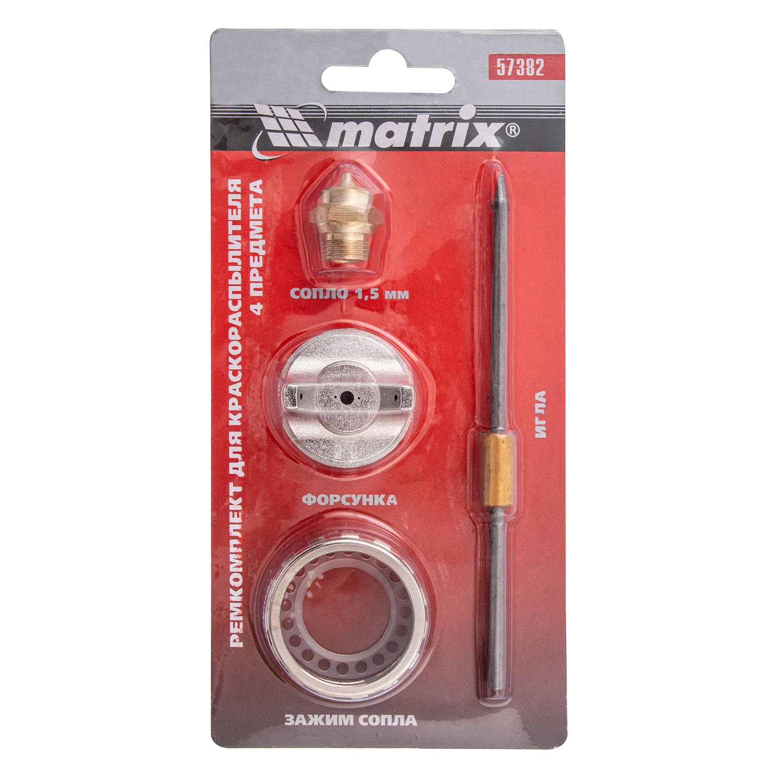 Ремкомплект для краскораспылителя 4 предмета : сопло 1.5 мм + игла + форсунка + зажим сопло Matrix в Москве