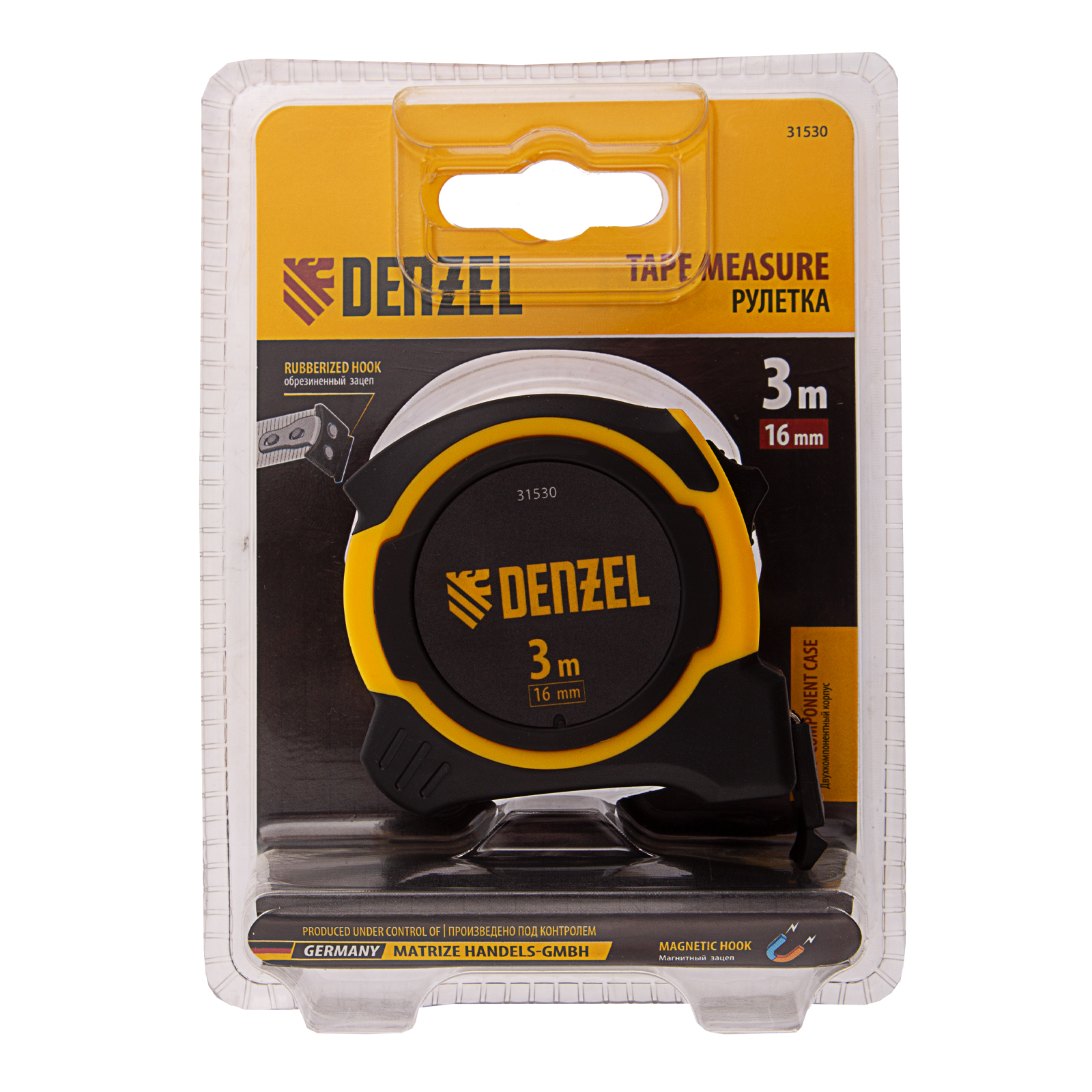 Рулетка 3м х 16мм, двухкомп. корпус, магнитный обрезиненный зацеп Denzel в Москве