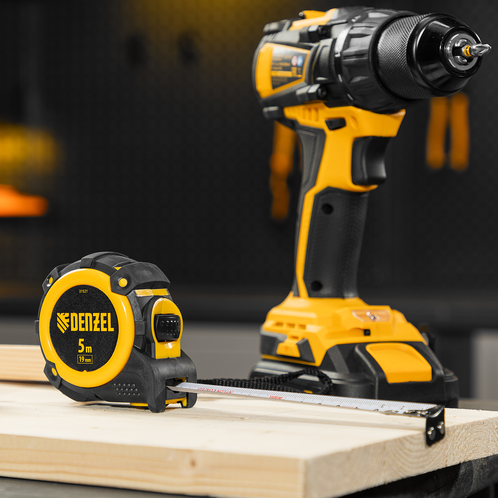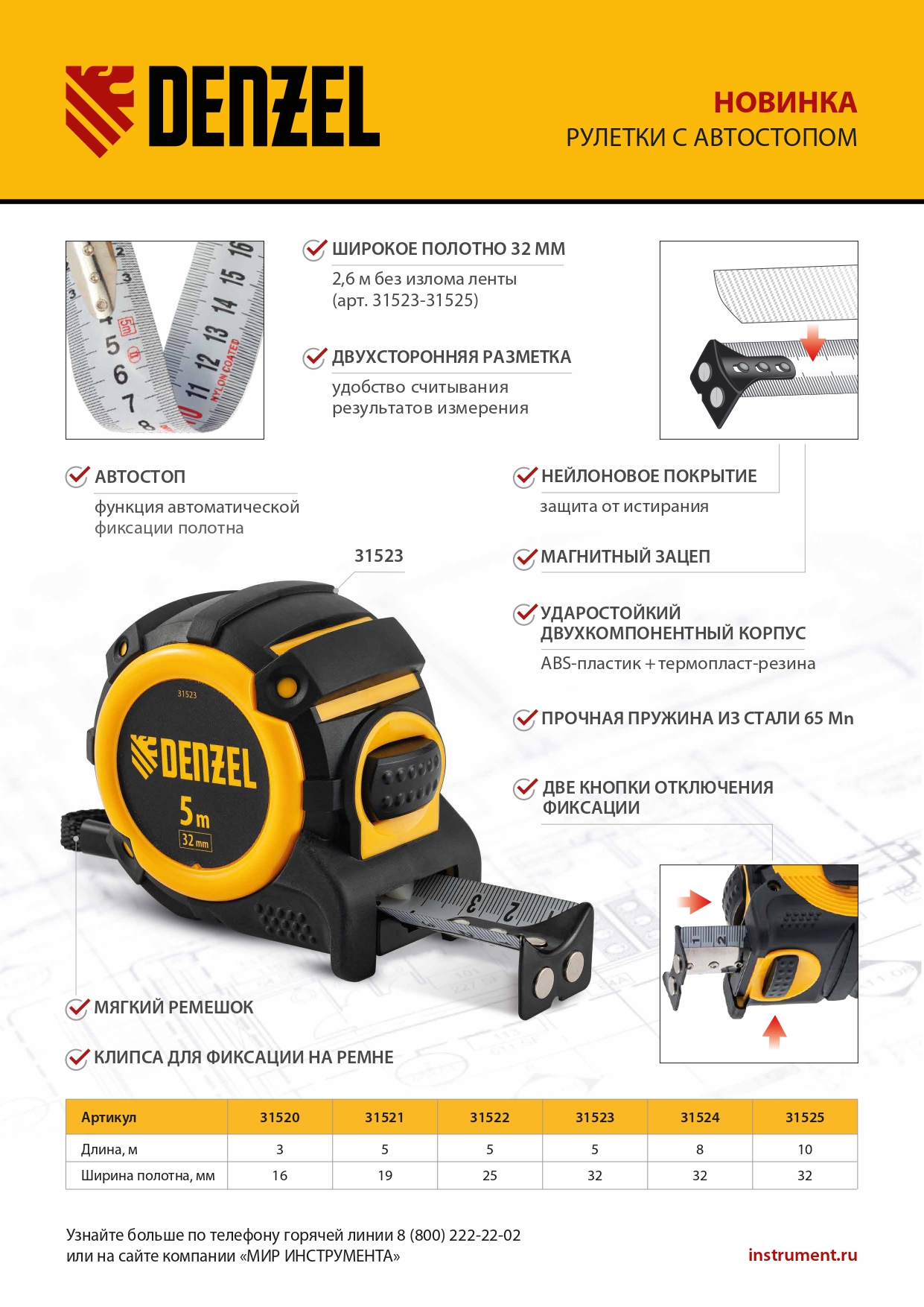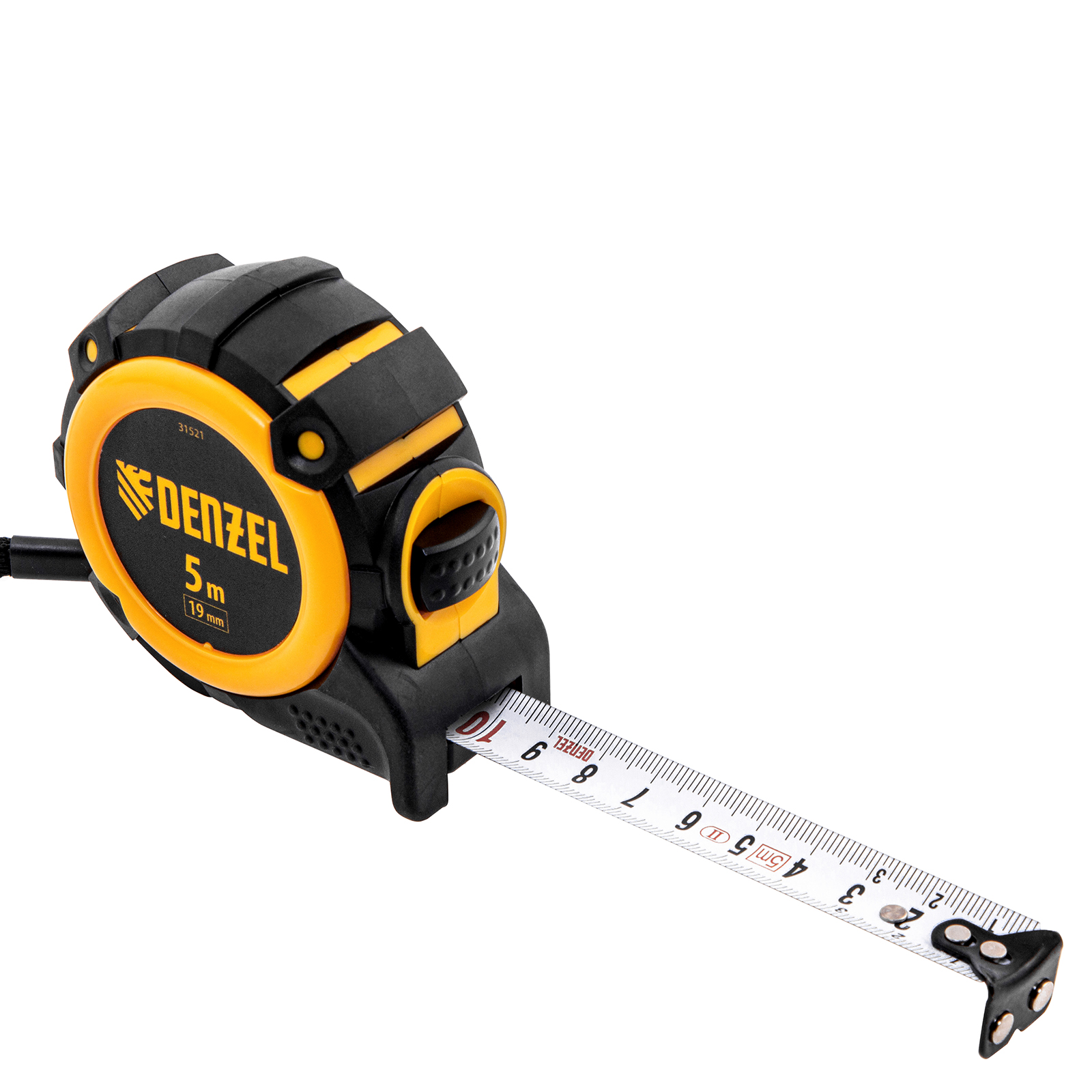 Рулетка 5м х 19мм, автоматич. фиксац., нейлон. покрытие, магнит. зацеп, двухстор. разметка Denzel в Москве