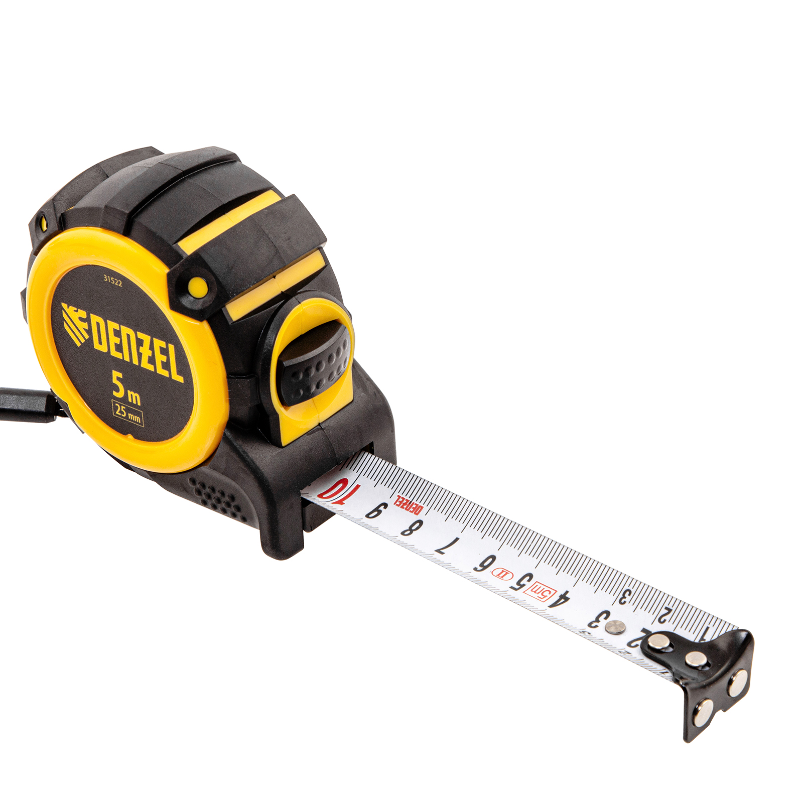Рулетка 5м х 25мм, автоматич. фиксац., нейлон. покрытие, магнит. зацеп, двухстор. разметка Denzel в Москве