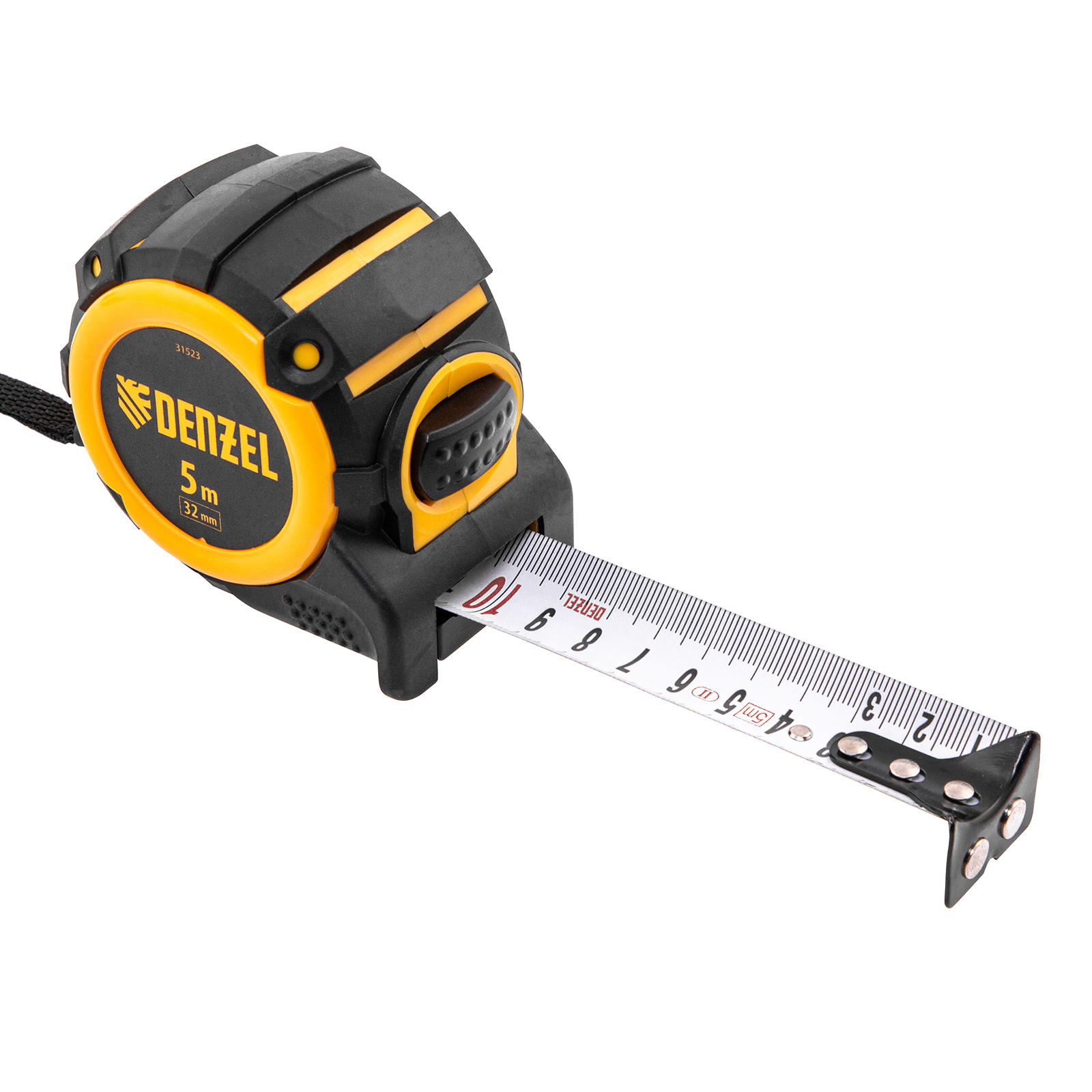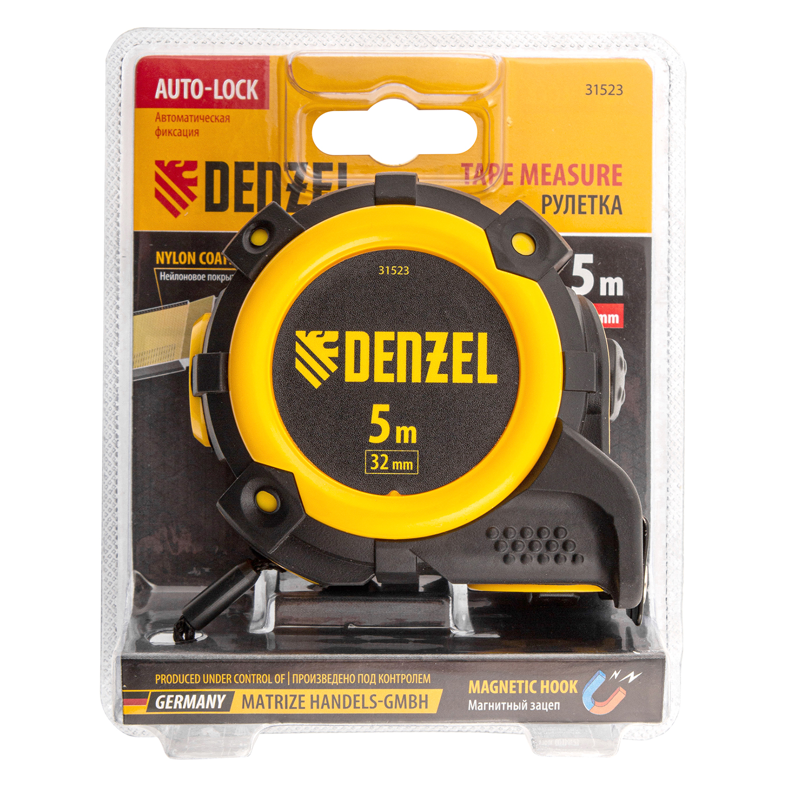 Рулетка 5м х 32мм, автоматич. фиксац., нейлон. покрытие, магнит. зацеп, двухстор. разметка Denzel в Москве