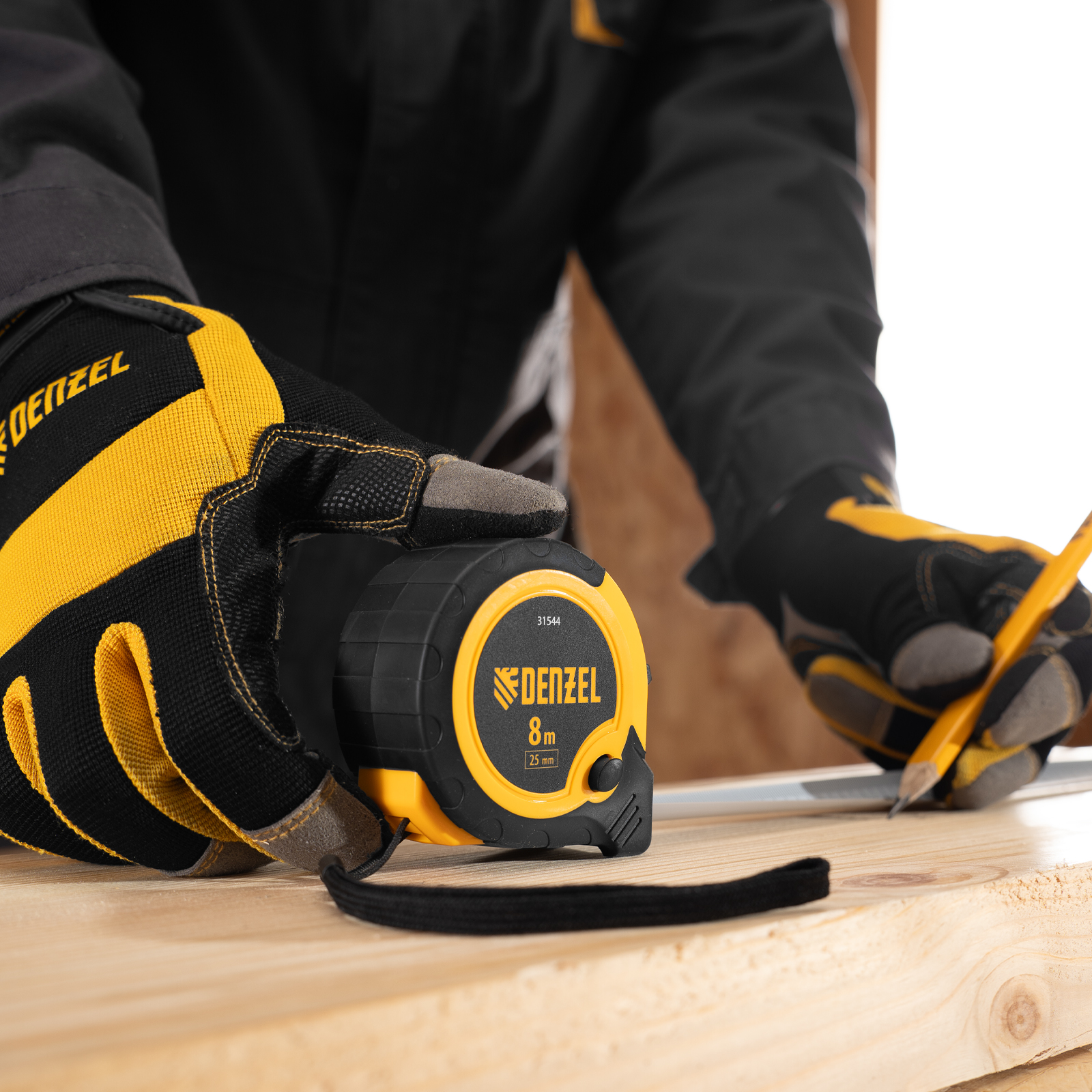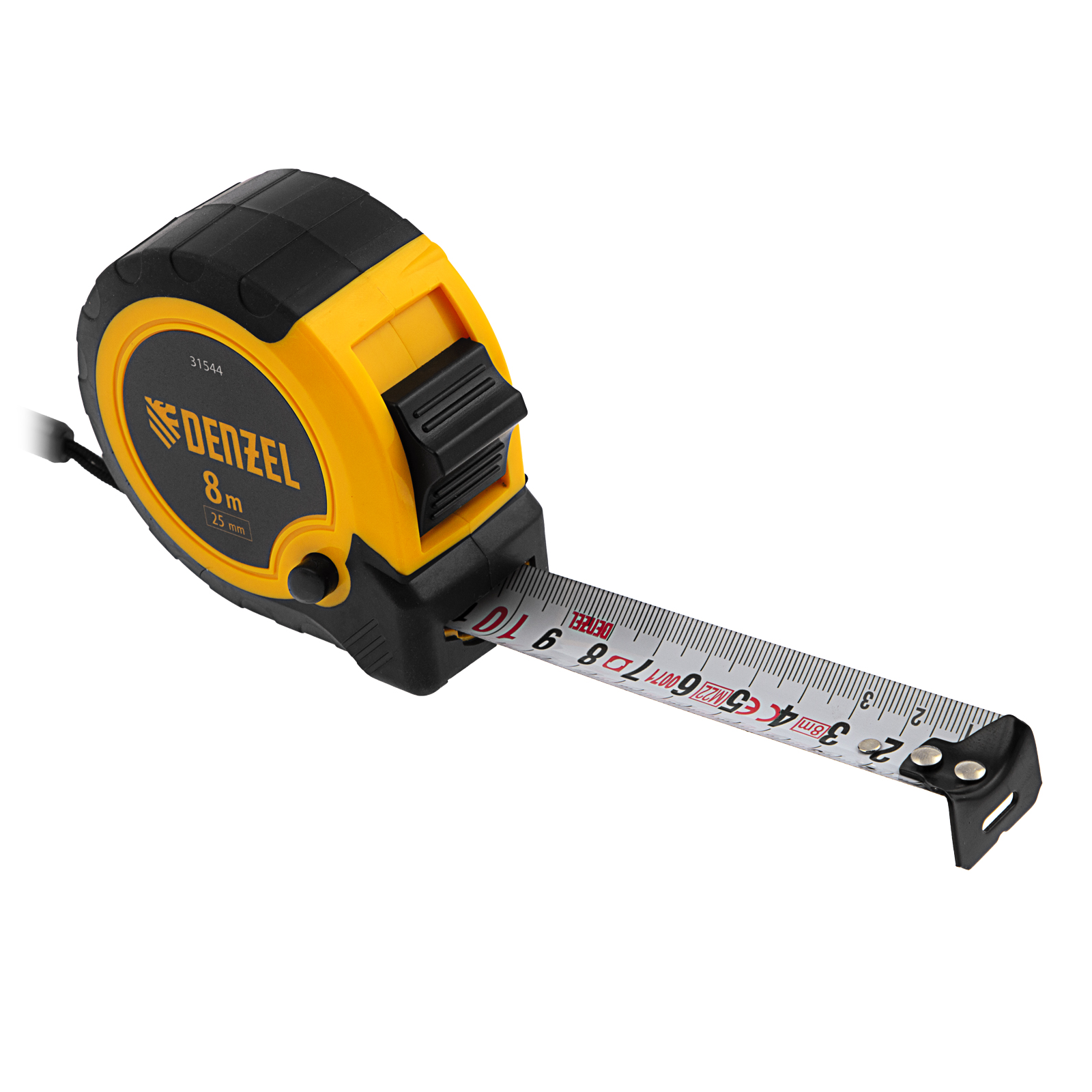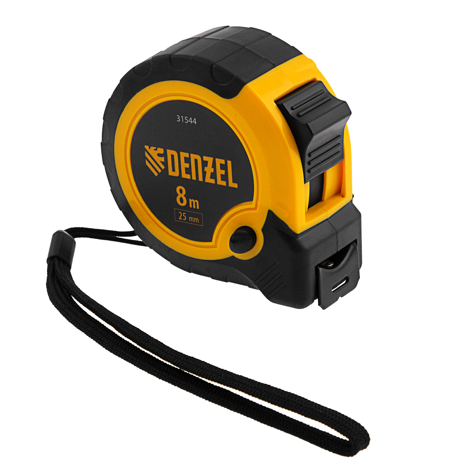 Рулетка 8м х 25мм, двухкомп. корпус, кнопка-пауза Denzel в Москве