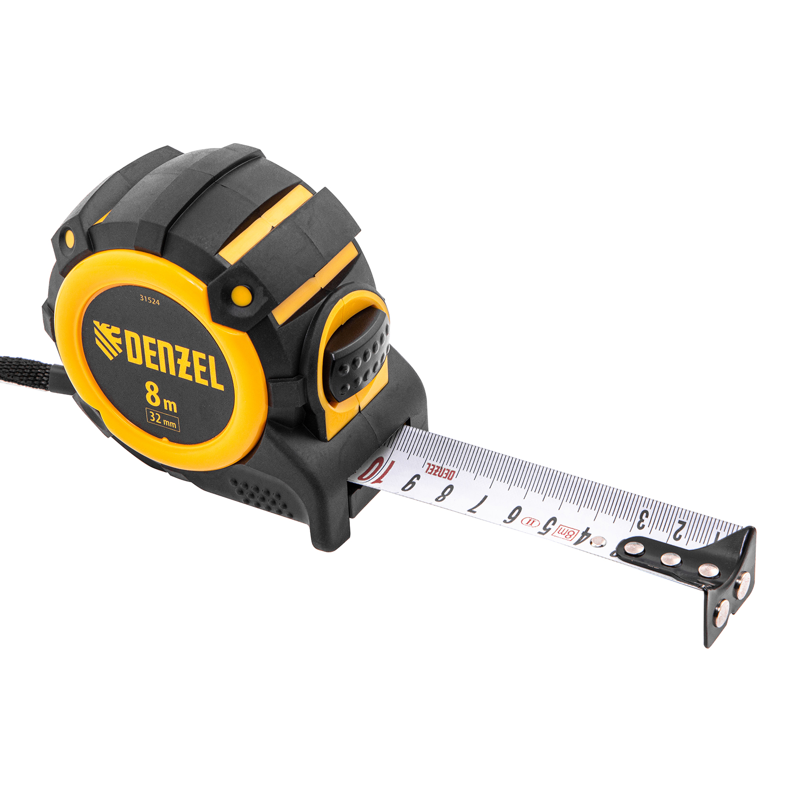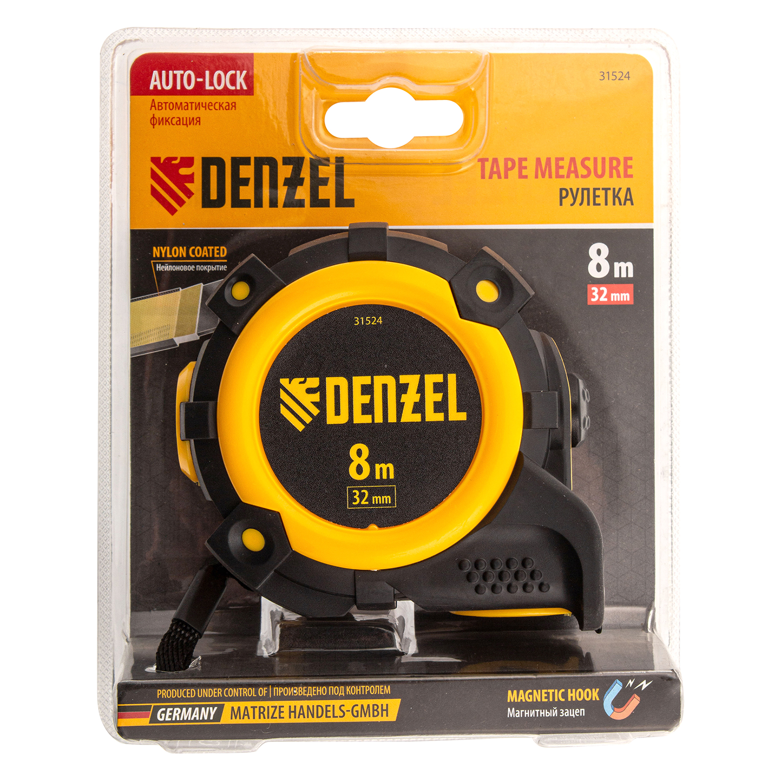 Рулетка 8м х 32мм, автоматич. фиксац., нейлон. покрытие, магнит. зацеп, двухстор. разметка Denzel в Москве