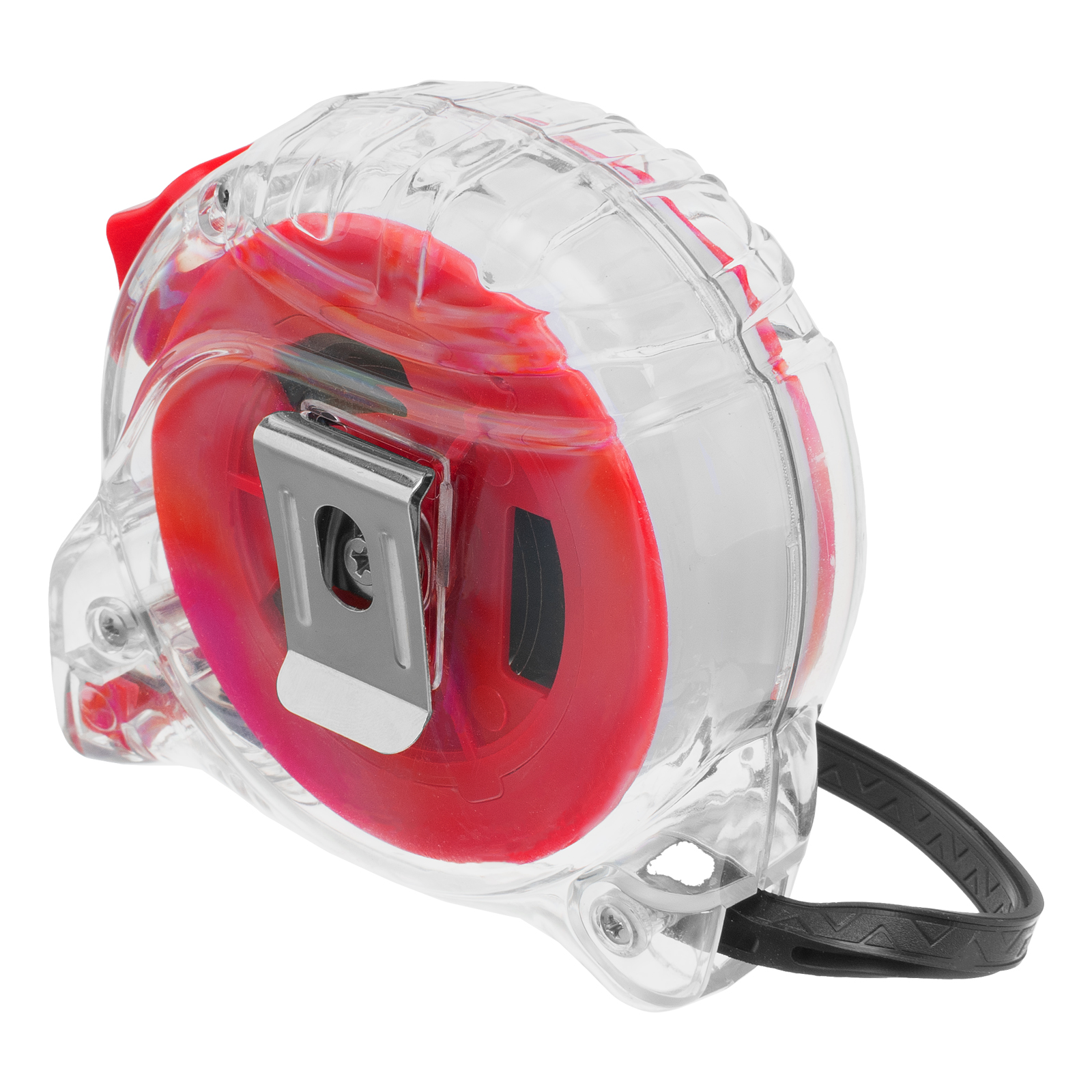 - Комфортная транспортировка — нейлоновый ремешок позволяет подвешивать рулетку на запястье, при помощи клипсы-зажима ее можно зафиксировать на поясе.