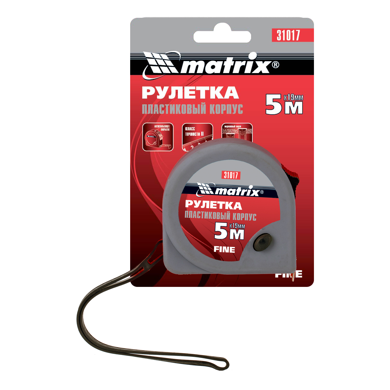 Рулетка Fine,5 м х 19 мм,пластиковый корпус Matrix в Москве