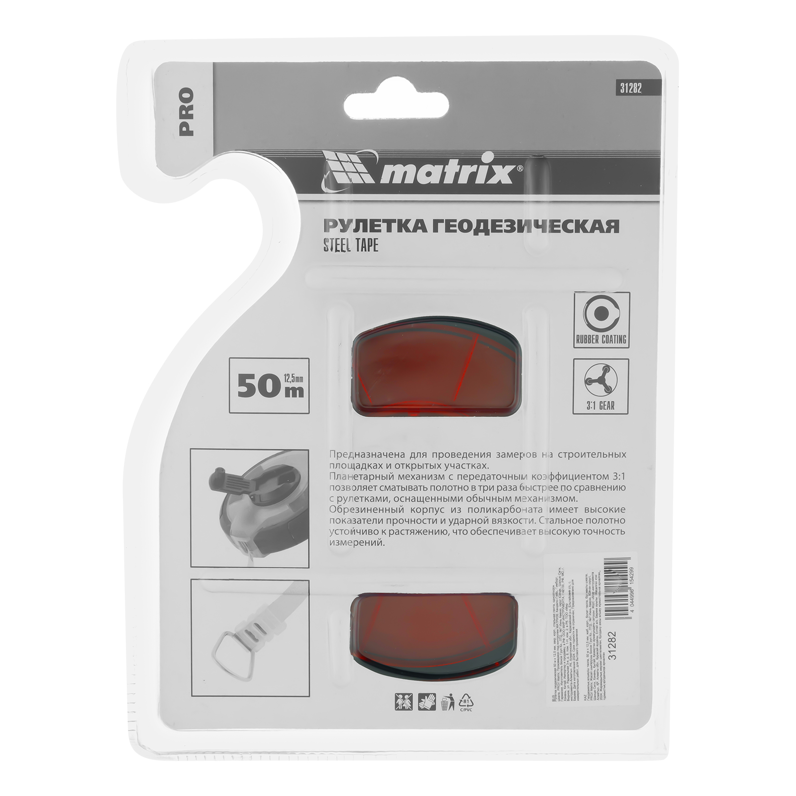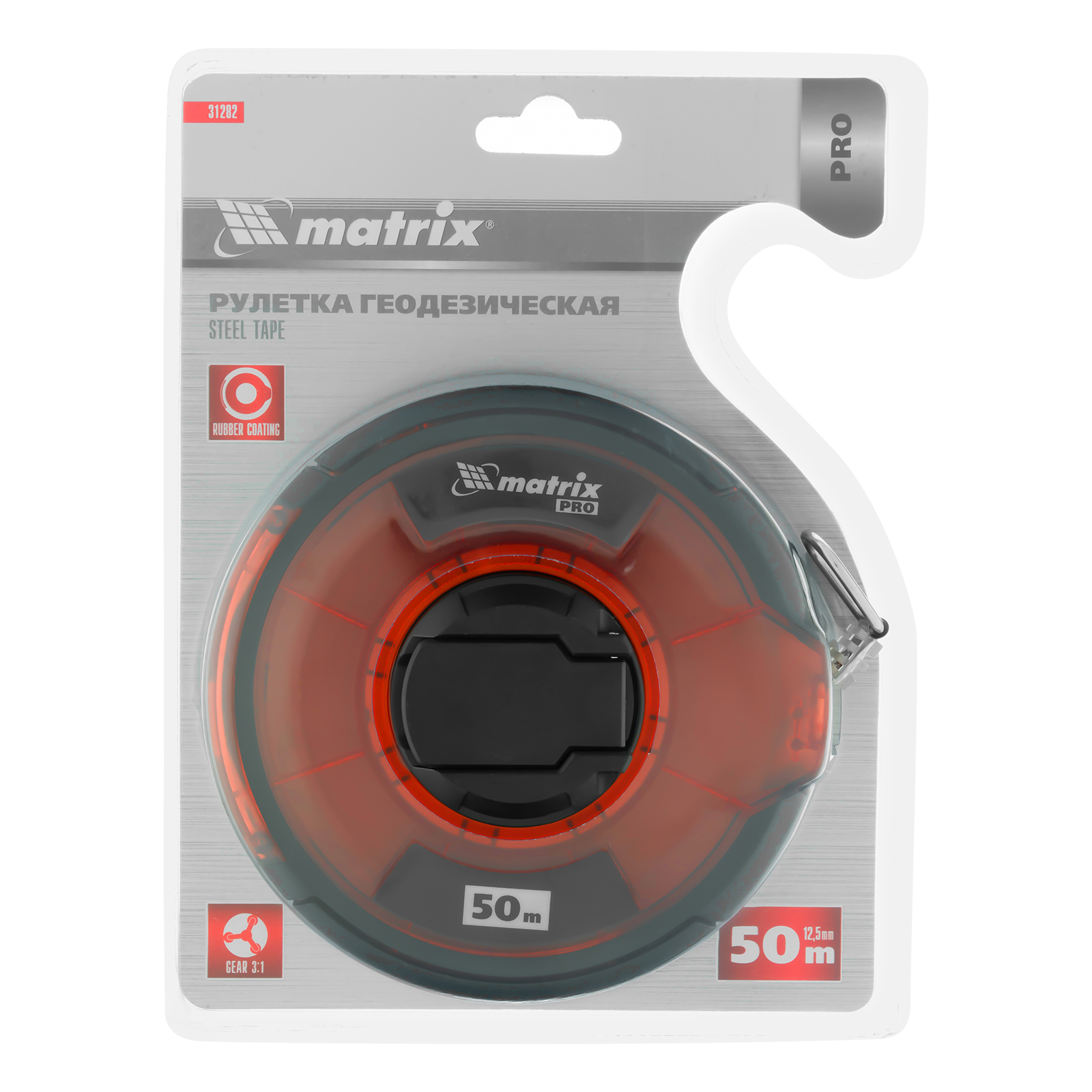 Рулетка геодезическая 50 м х 12,5 мм, закрытый корпус, стальная лента, односторонняя шкала, Pro Matrix в Москве