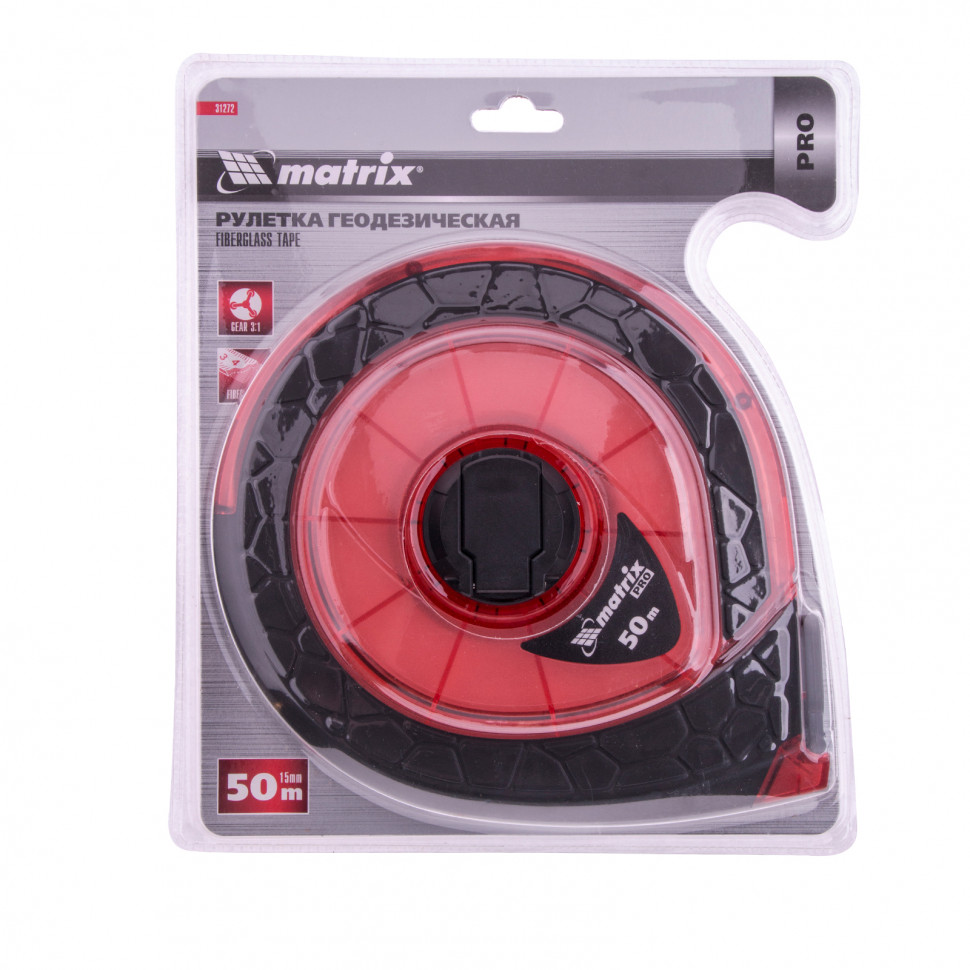 Рулетка геодезическая 50 м х 15 мм, закрытый корпус, фибергласовая лента, двусторонняя шкала, Pro Matrix в Москве