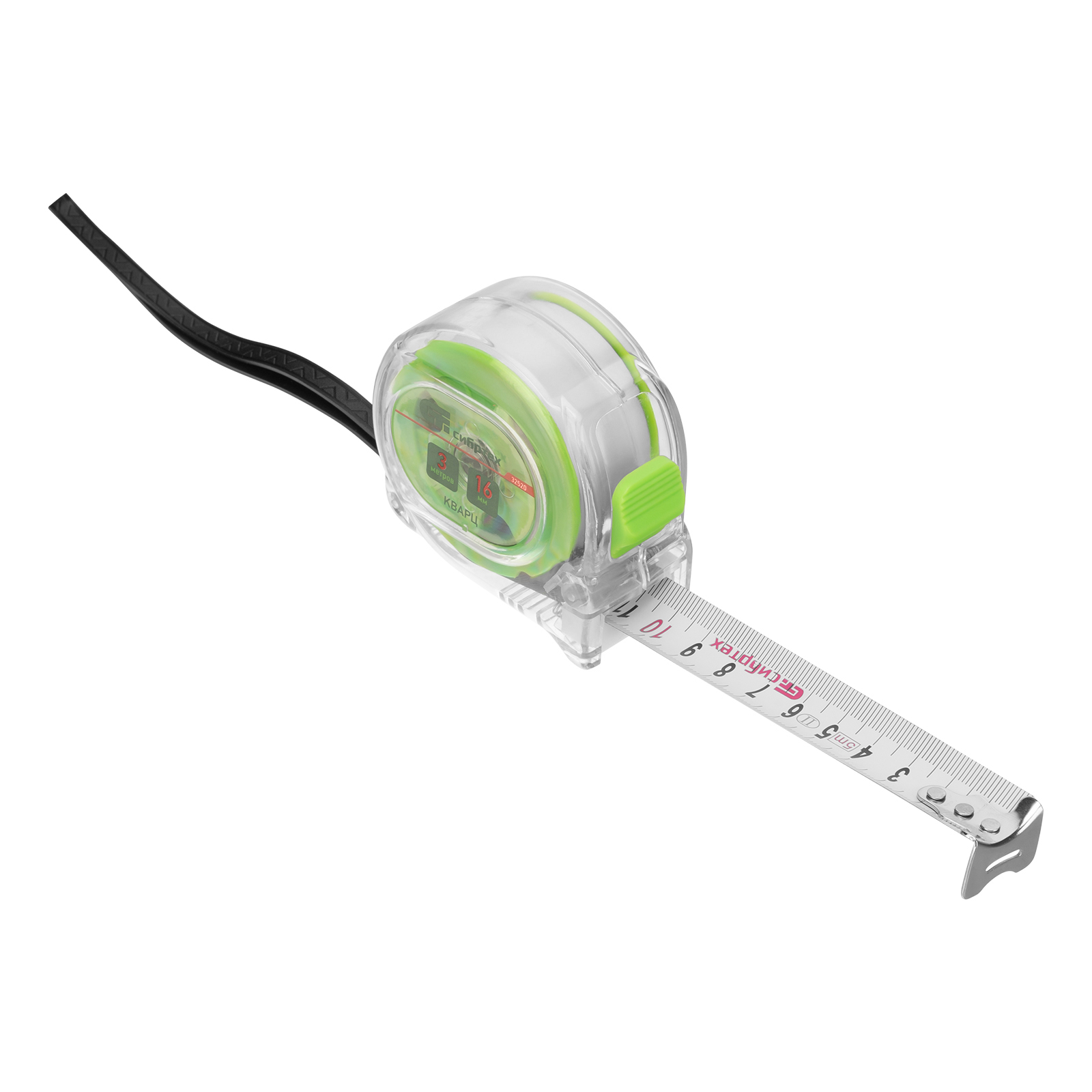 Рулетка Кварц,прозрачный корпус,амортизатор,3 м х 16 мм Сибртех в Москве