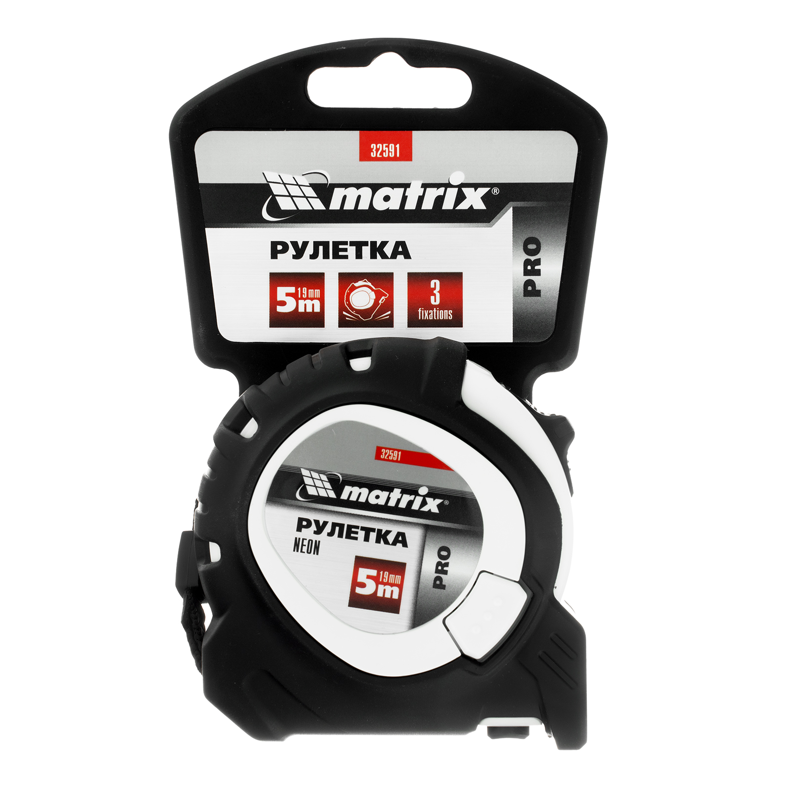 Рулетка Neon,5 м x 19 мм,обрезиненный корпус,3 фиксации,Pro Matrix в Москве