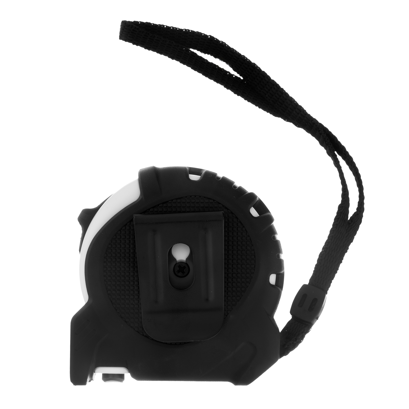 - Удобная транспортировка — рулетку можно повесить на запястье за ремешок или закрепить на поясе при помощи металлического зажима на корпусе.