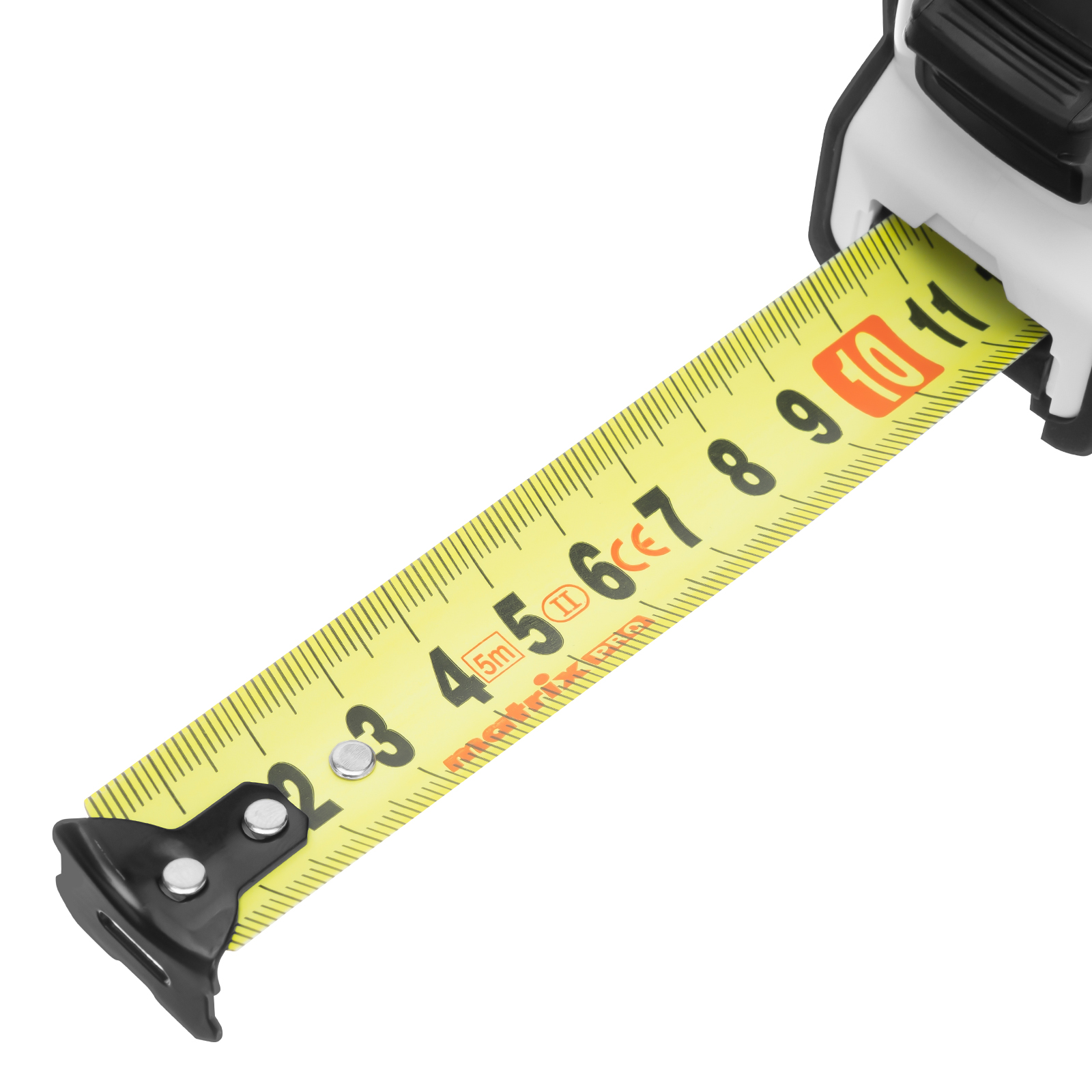 Рулетка Matrix PRO Neon 32592 в обрезиненном корпусе, с 3 механизмами фиксации ленты длиной 5 м и шириной 25 мм, служит для определения расстояний и размеров различных предметов. Крупные цифры на матовом желто-зеленом полотне хорошо видны, что облегчает считывание результатов. Измерительное полотно можно зафиксировать на нужной отметке при помощи стопора или одной из двух кнопок-пауз — это удобно при проведении большого количества замеров. Рулетка предназначена для выполнения профессиональных и бытовых измерительных работ.