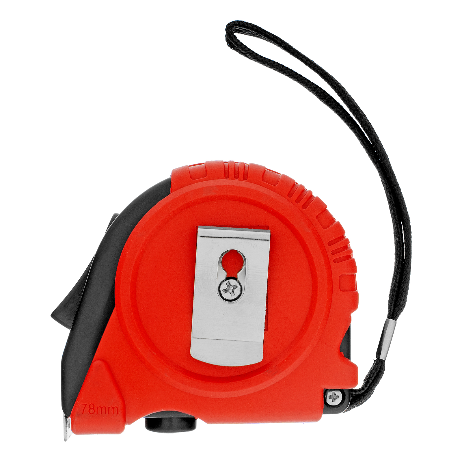 - Защита от падения — шнурок позволяет закрепить рулетку на запястье, клипса на корпусе — на поясном ремне.