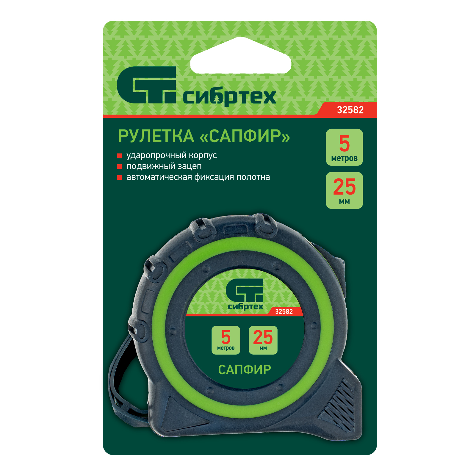 Рулетка Сапфир,двухкомпонентный корпус,5 м х 25 мм Сибртех в Москве