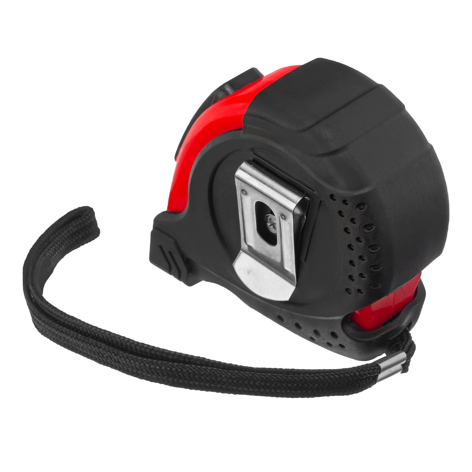- Дополнительные возможности — шнурок для крепления на запястье уменьшает риск падения рулетки, на боковой поверхности имеется зажим для фиксации рулетки на поясном ремне.