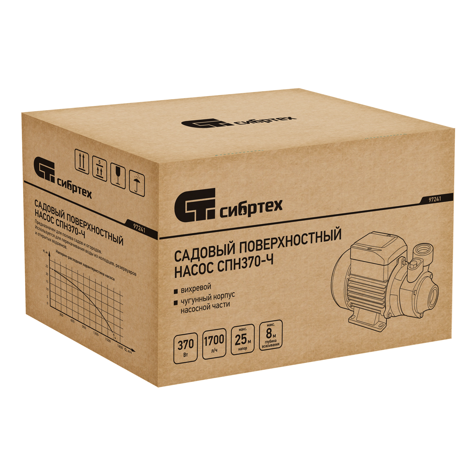 Садовый поверхностный насос СПН370-Ч, 370 Вт, напор 25 м, 1700 л/ч, чугун Сибртех в Москве
