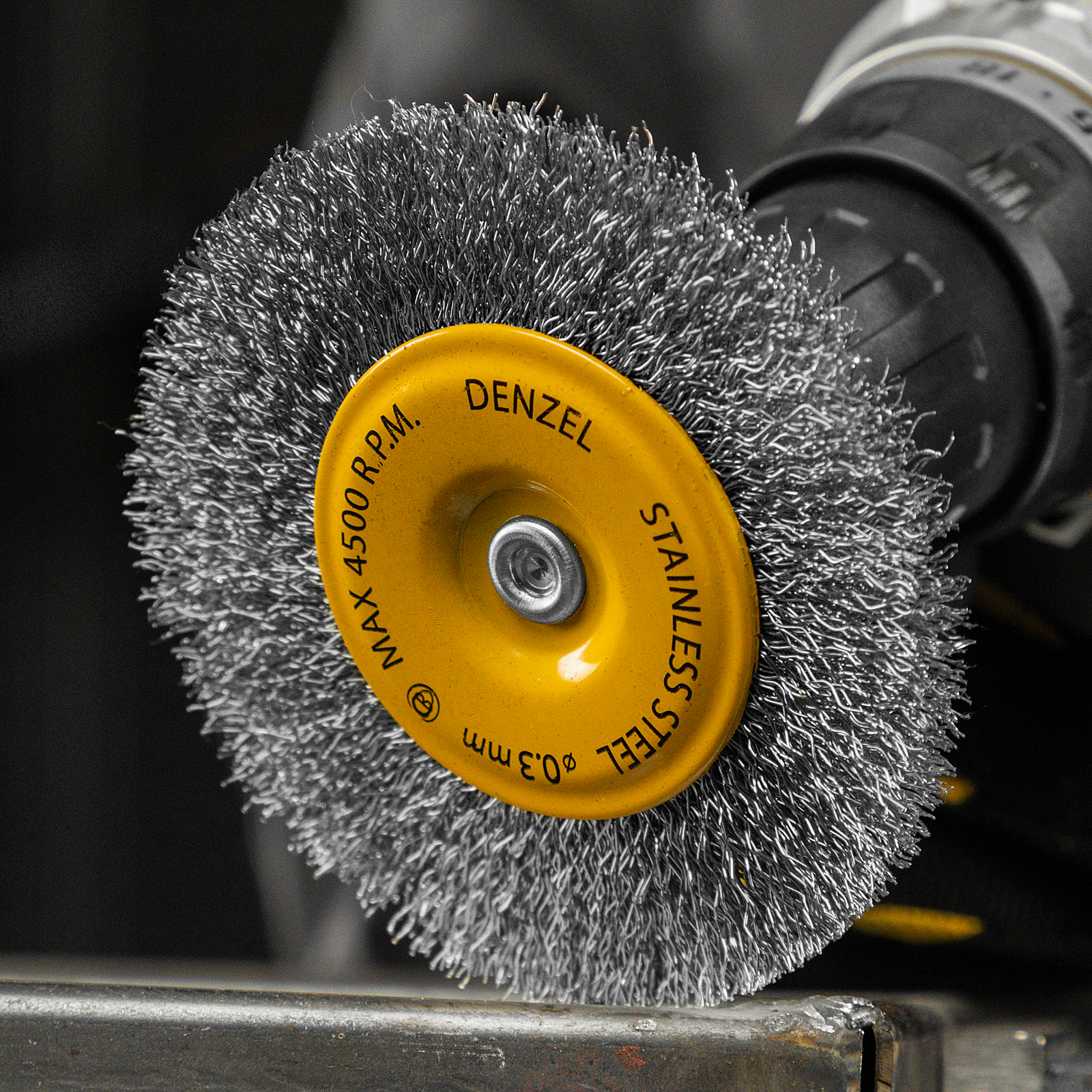 Плоская щетка Denzel 744793 диаметром 100 мм, со шпилькой и щетиной из нержавеющей витой проволоки, предназначена для выполнения зачистных работ. Позволяет обработать поверхность, снять тонкий слой краски, ржавчины, удалить загрязнения. Подходит для твердых материалов: стали, в том числе нержавеющей, древесины, пластика и т.д. Плоская щетка оптимальна для зачистки поверхностей со сложным рельефом, имеющих углы, пазы и изгибы.