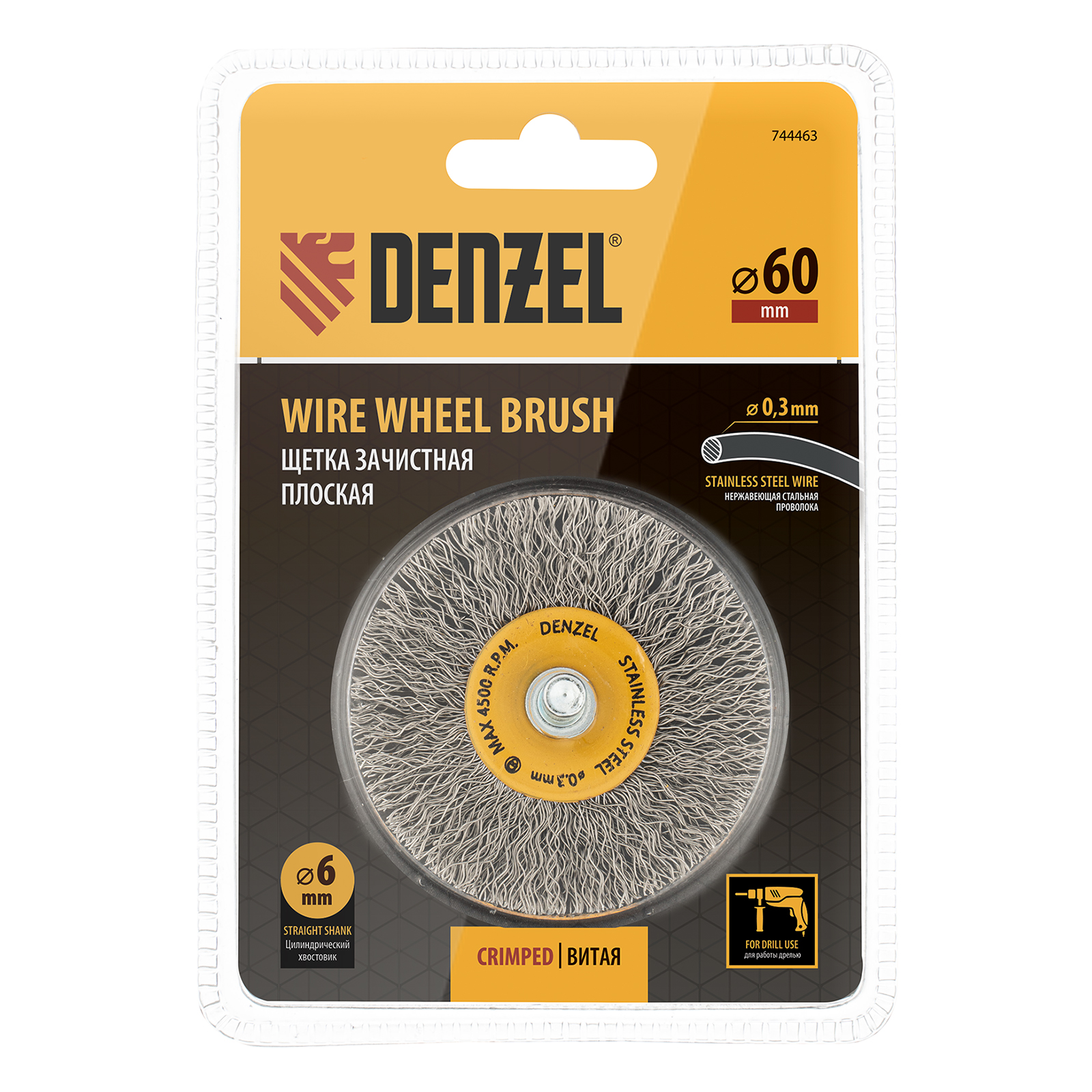 Щетка для дрели, 60 мм, Плоская, со шпилькой, нержавеющая витая проволока Denzel в Москве