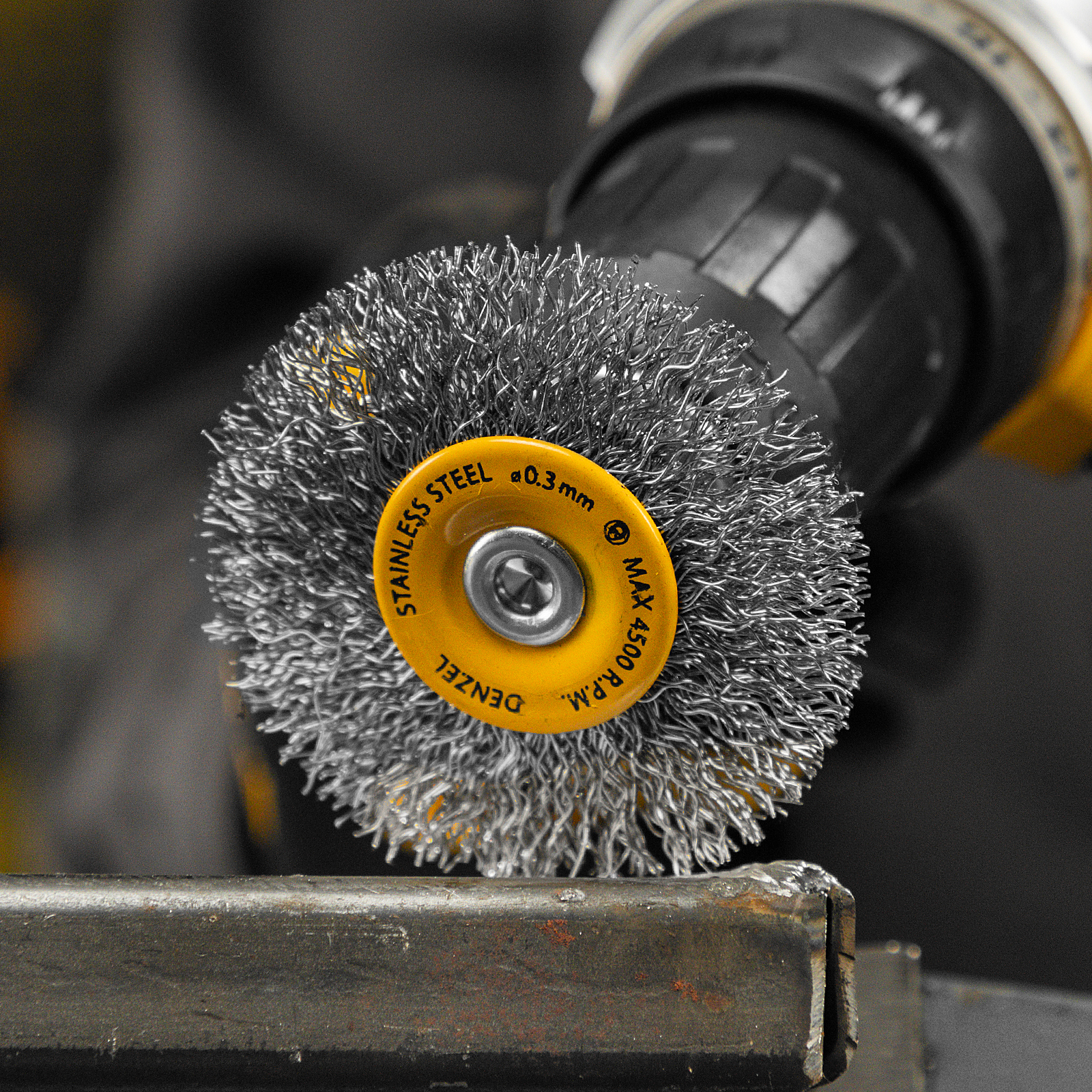 - Быстрая подготовка к работе — щетка имеет хвостовик диаметром 6 мм для установки в патрон дрели.