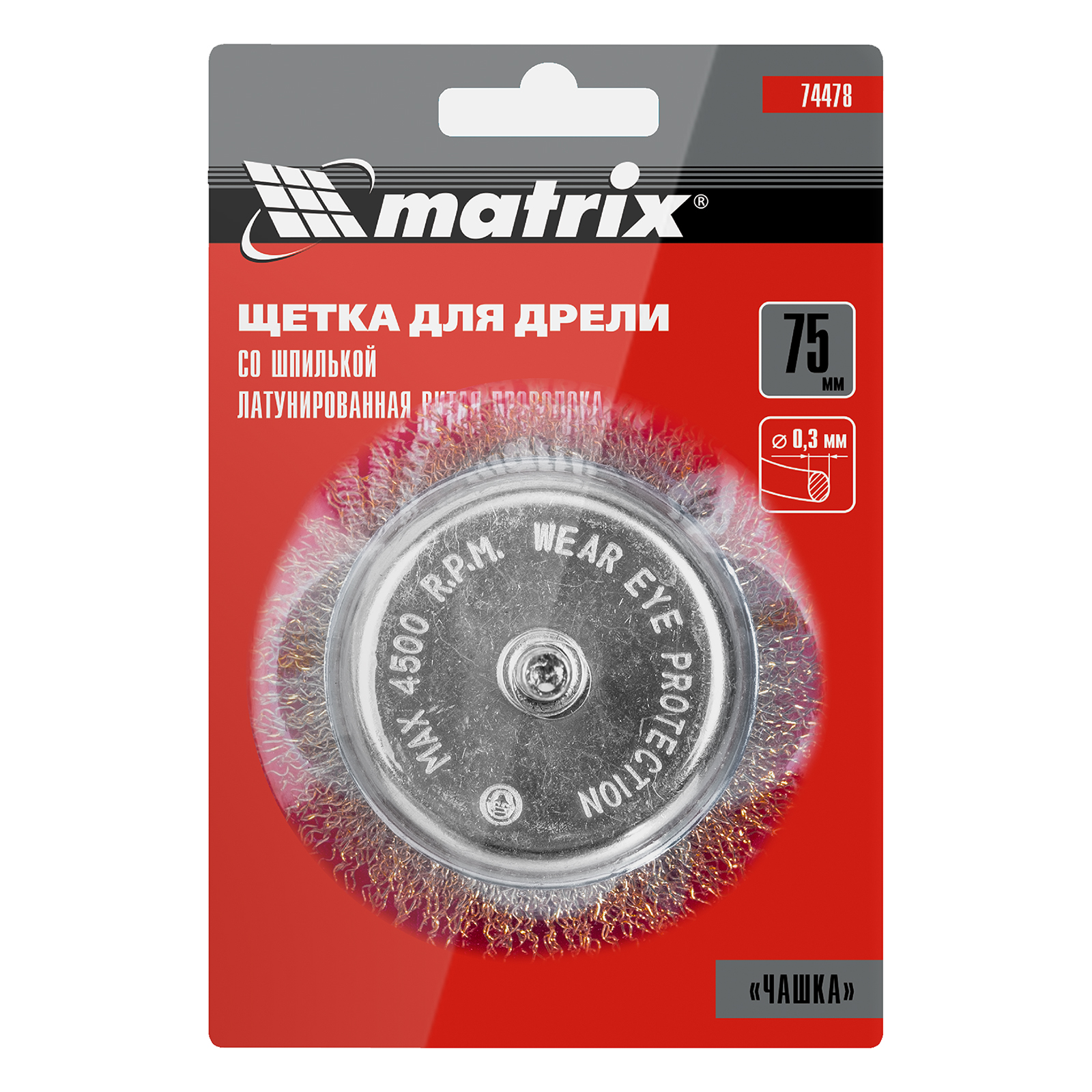 Щетка для дрели «чашка» Matrix 74478 диаметром 75 мм, со шпилькой и щетиной из латунированной витой проволоки, используется для очистки металлических, деревянных и пластиковых поверхностей от незначительных загрязнений и остатков лакокрасочных покрытий. Помогает подчеркнуть структуру материала или придать ему шероховатость. Хвостовик диаметром 6 мм устанавливается в патрон электродрели, поддерживающей скорость 4500 об/мин. Во время работы нужно использовать средства индивидуальной защиты — респиратор, очки, наушники, спецодежду и обувь. Щетка пригодится как профессиональным, так и домашним мастерам.