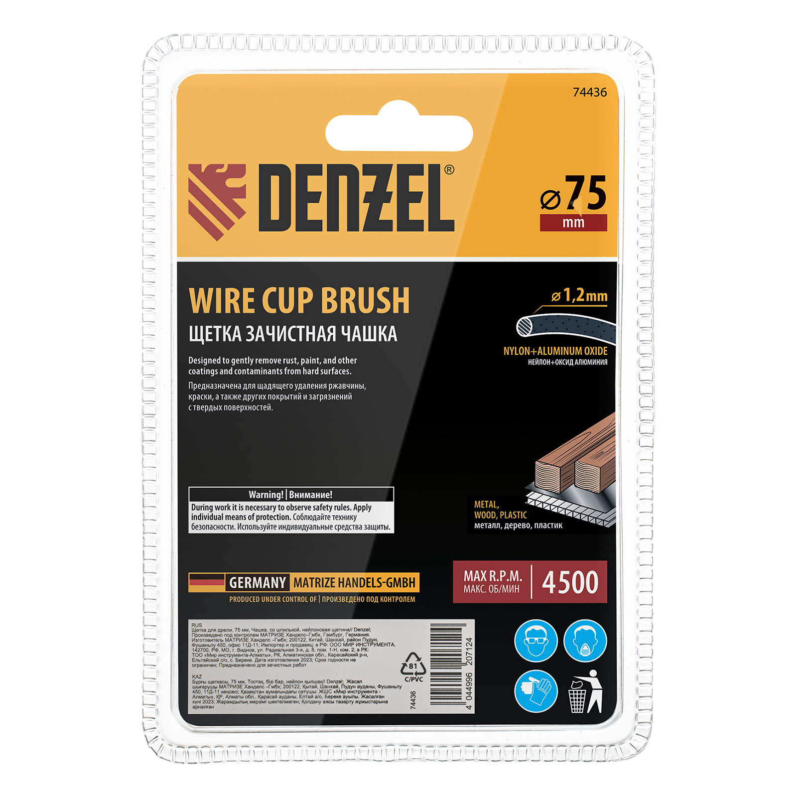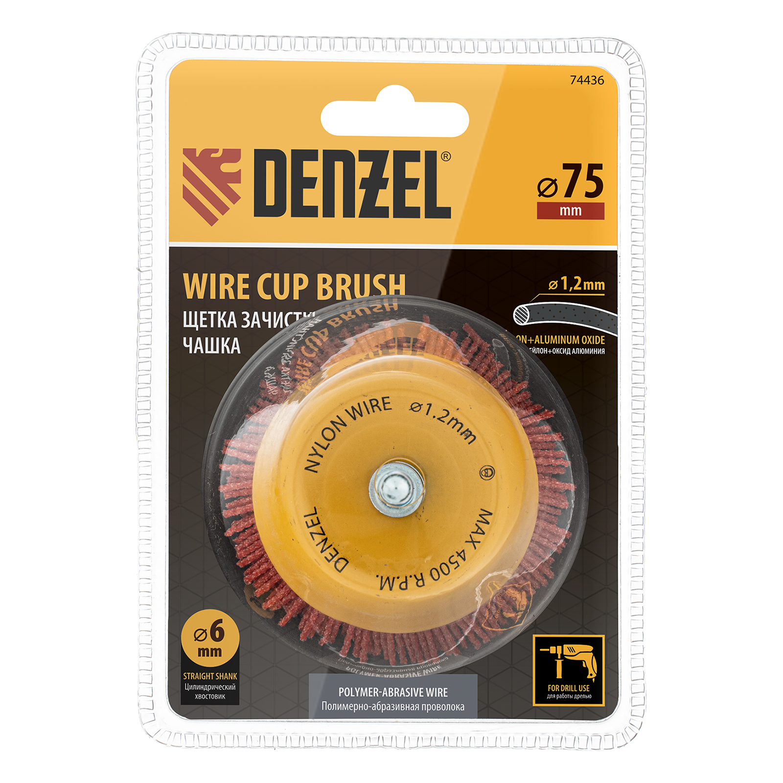 Щетка для дрели, 75 мм, Чашка, со шпилькой, нейлоновая щетина Denzel в Москве