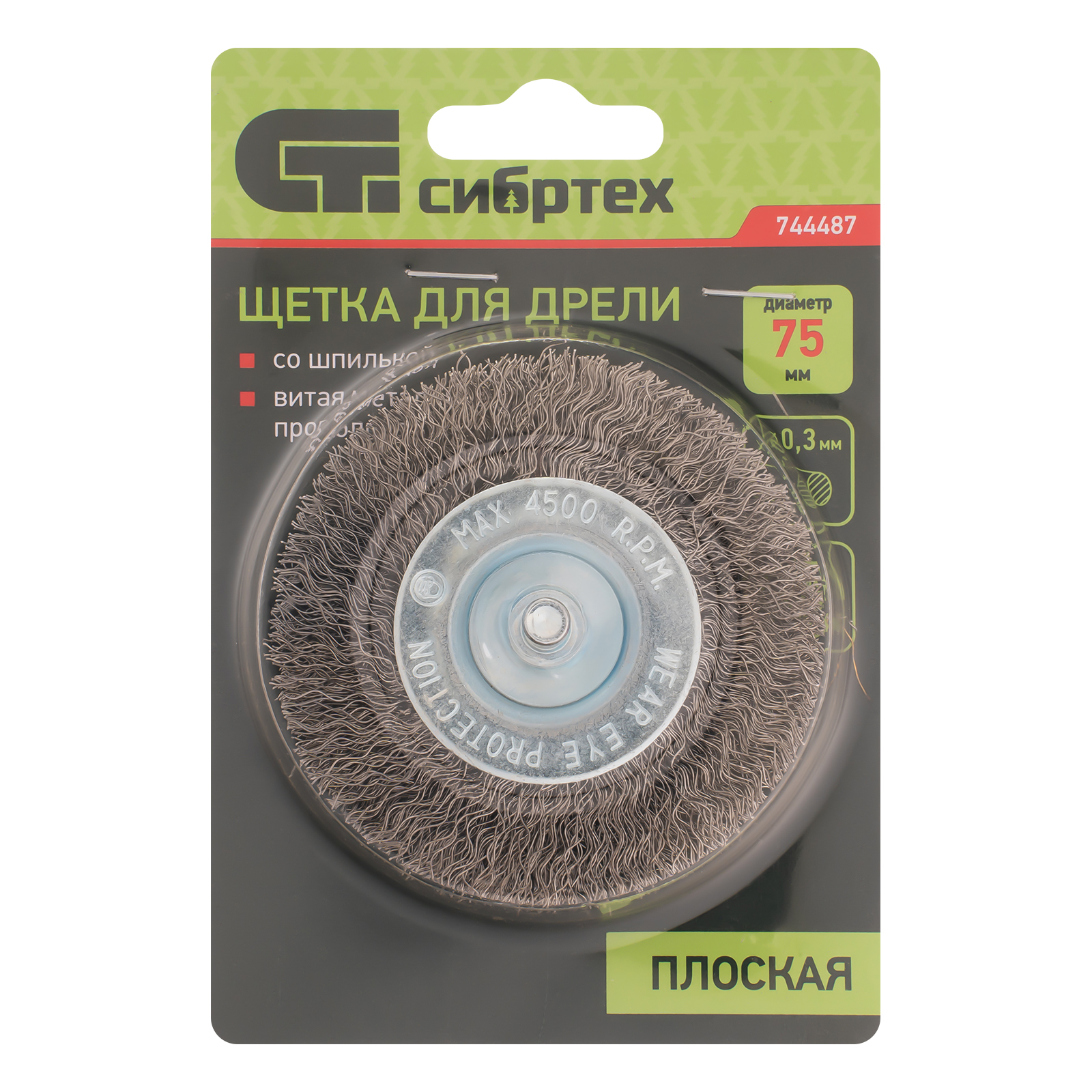 Щетка для дрели, 75 мм, плоская со шпилькой, витая проволока Сибртех в Москве