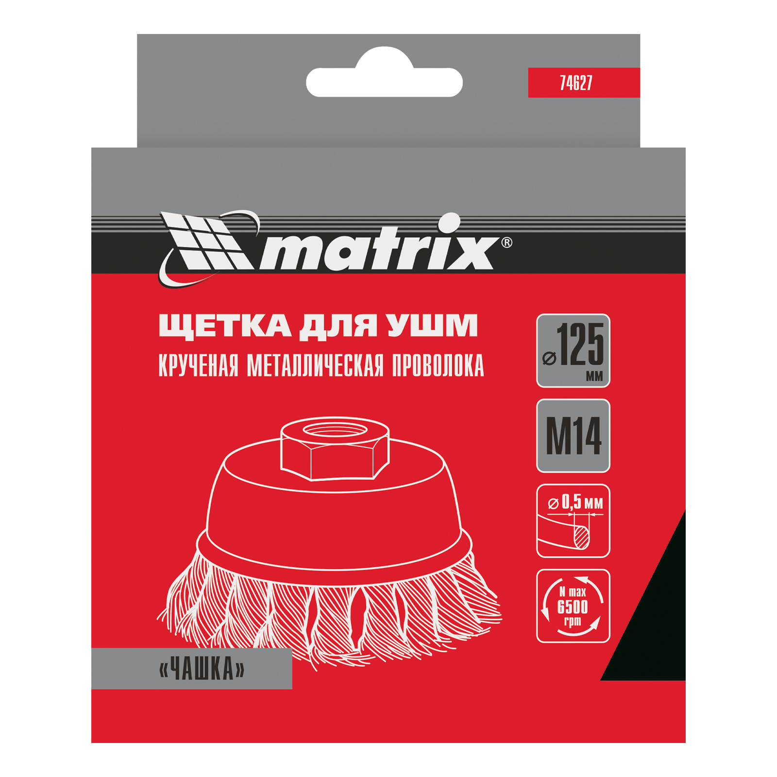 Щетка для УШМ, 125 мм, М14, "чашка", крученая проволока 0.5 мм Matrix в Москве