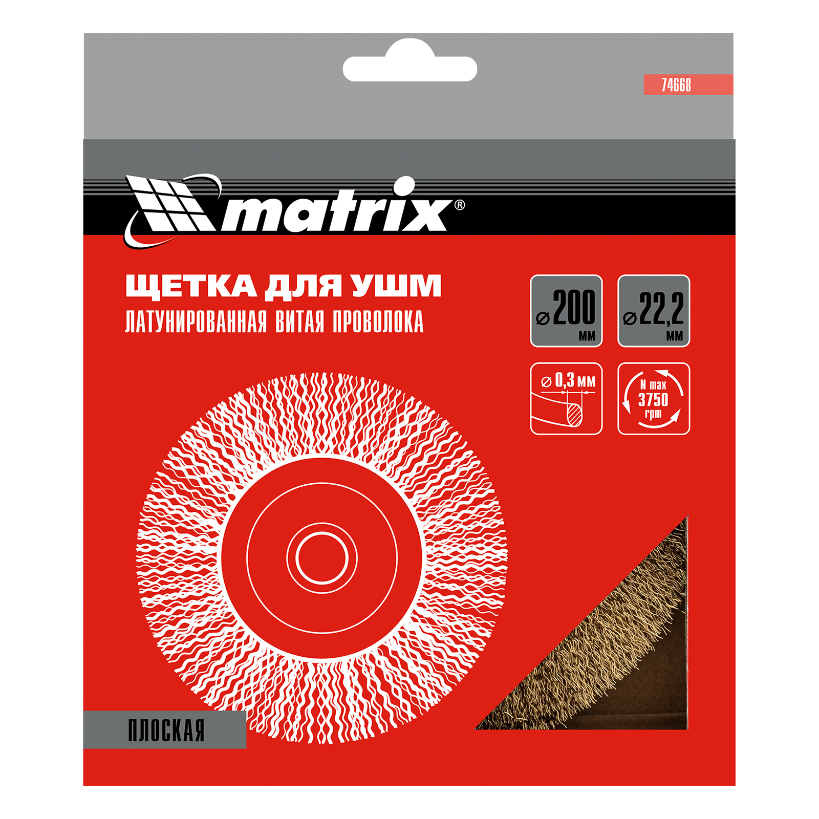 Щетка для УШМ, 200 мм, посадка 22.2 мм, плоская, латунированная витая проволока Matrix в Москве