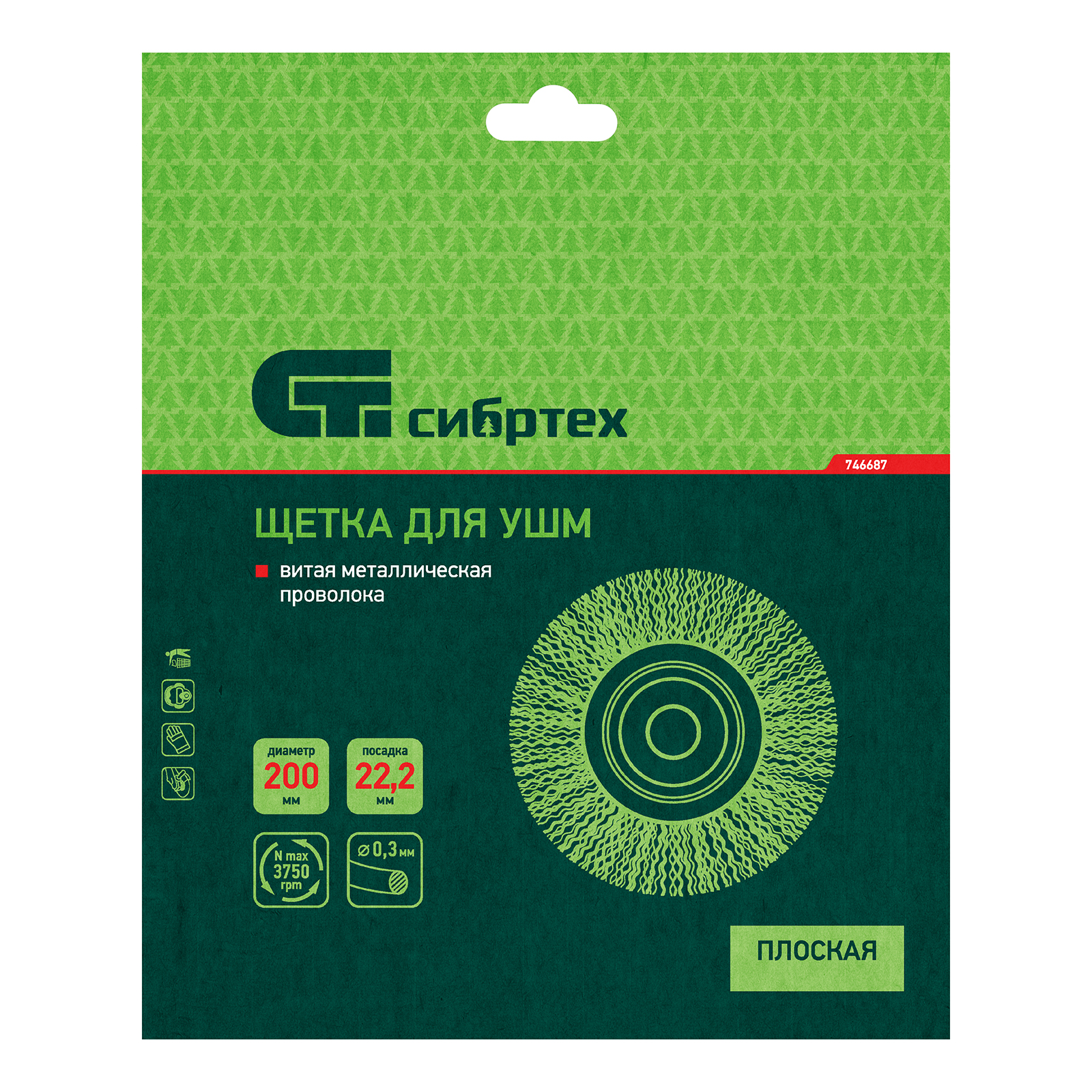 Щетка для УШМ, 200 мм, посадка 22.2 мм, плоская, витая проволока 0.3 мм Сибртех в Москве