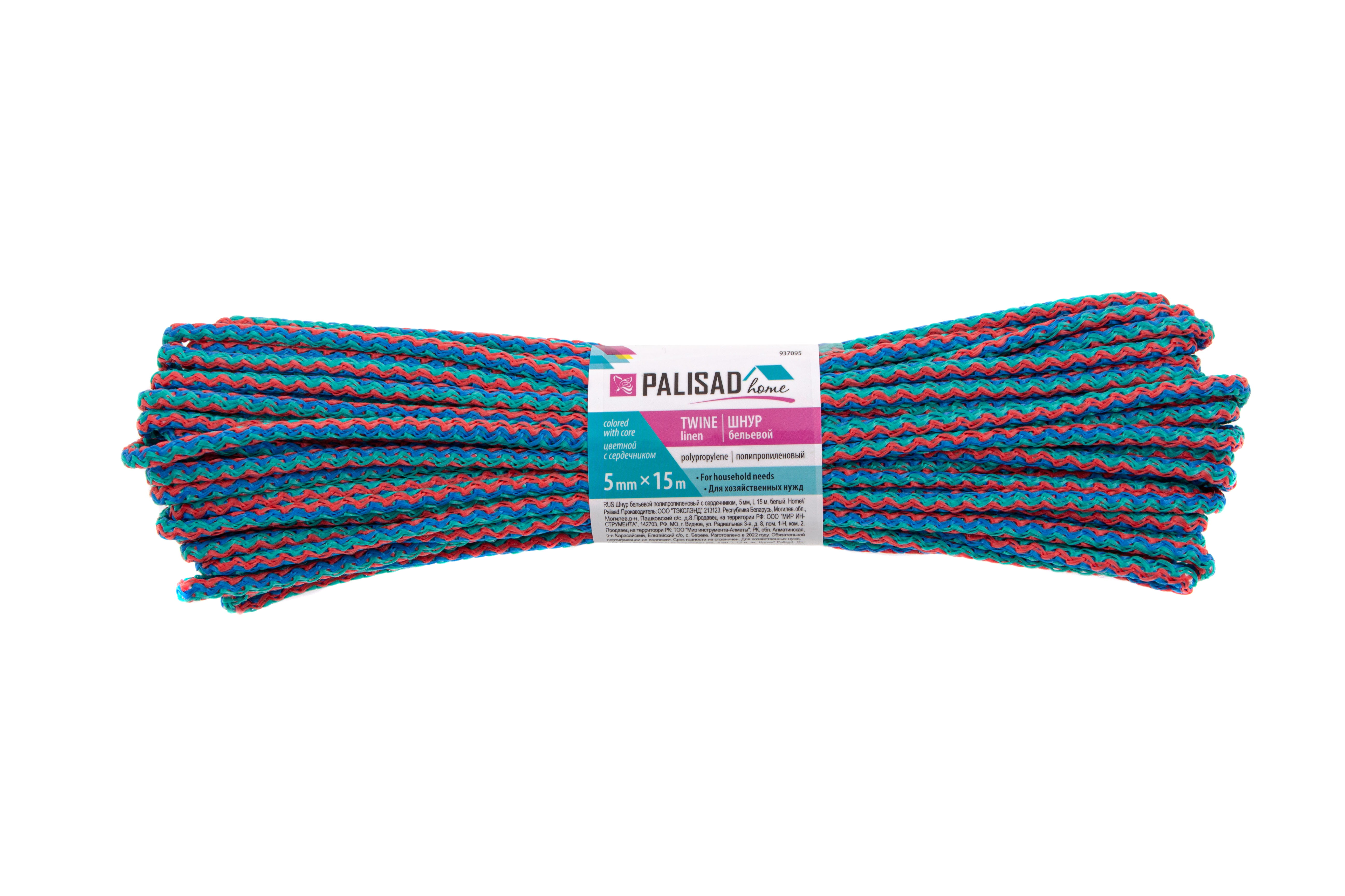 Шнур бельевой полипропиленовый с сердечником, 5 мм, L 15 м, цветной, Home Palisad в Москве