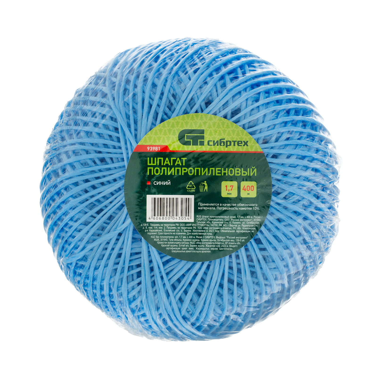 Шпагат полипропиленовый синий, 1.7 мм, L 400 м, Сибртех в Москве