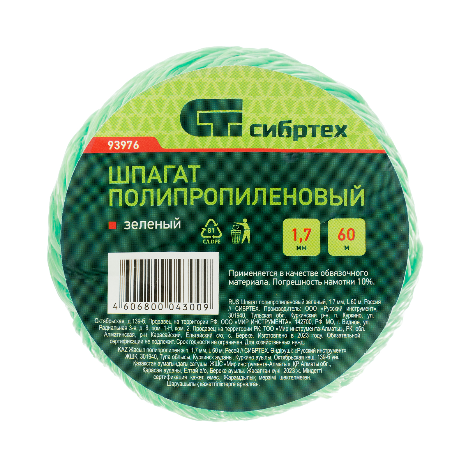 • Длительный срок службы — шпагат изготовлен из полипропиленовых нитей, устойчивых к истиранию и воздействию химических веществ.