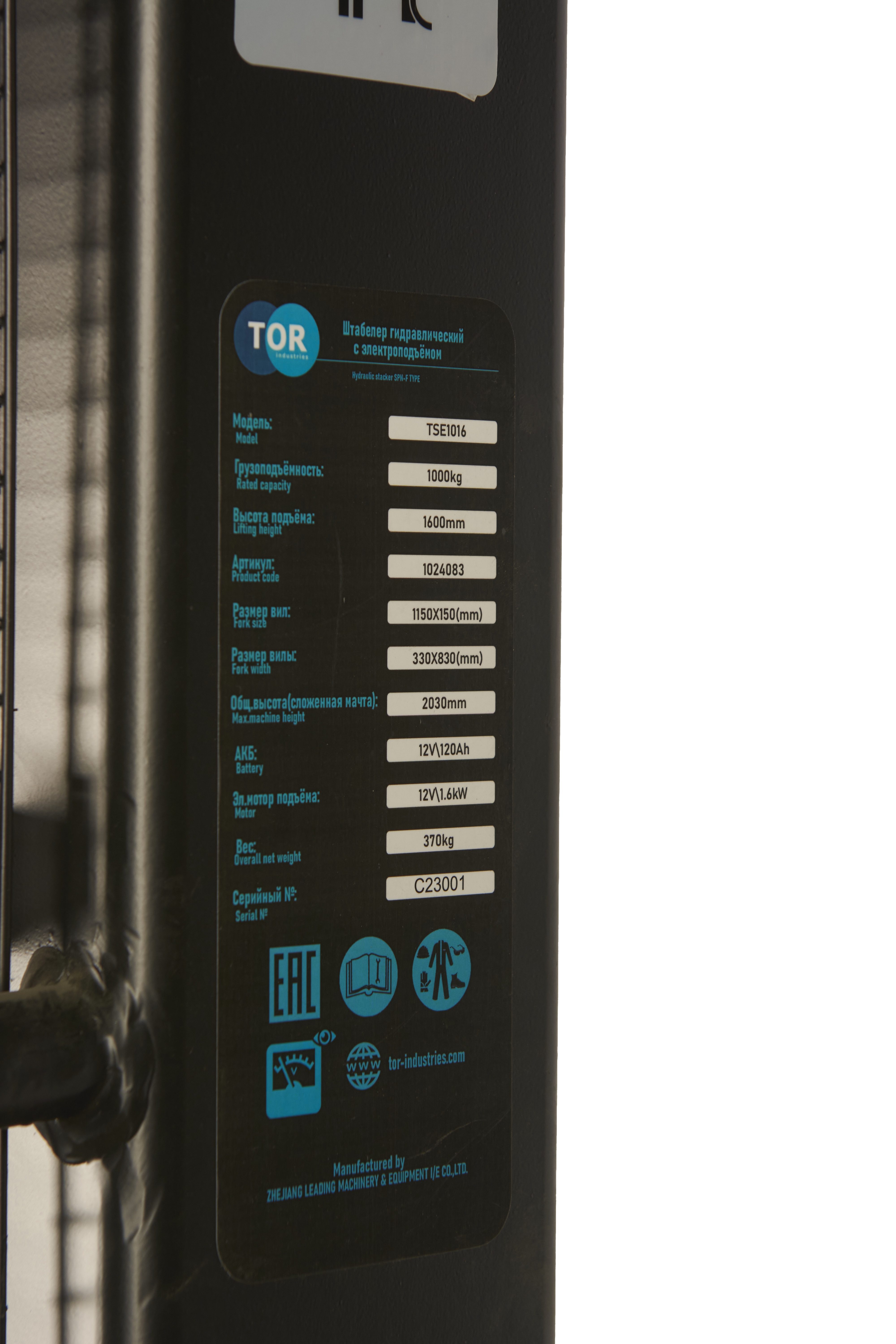 Штабелер гидравлический с электроподъемом 1,0 т 1,6 м TOR TSE1016 в Москве
