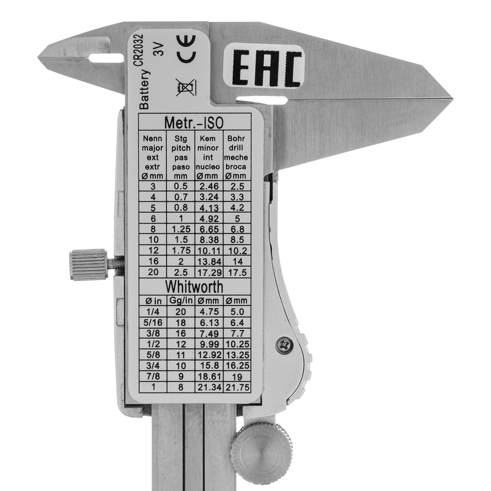 - Безопасная транспортировка и хранение — штангенциркуль упакован в прочный пластиковый кейс.
