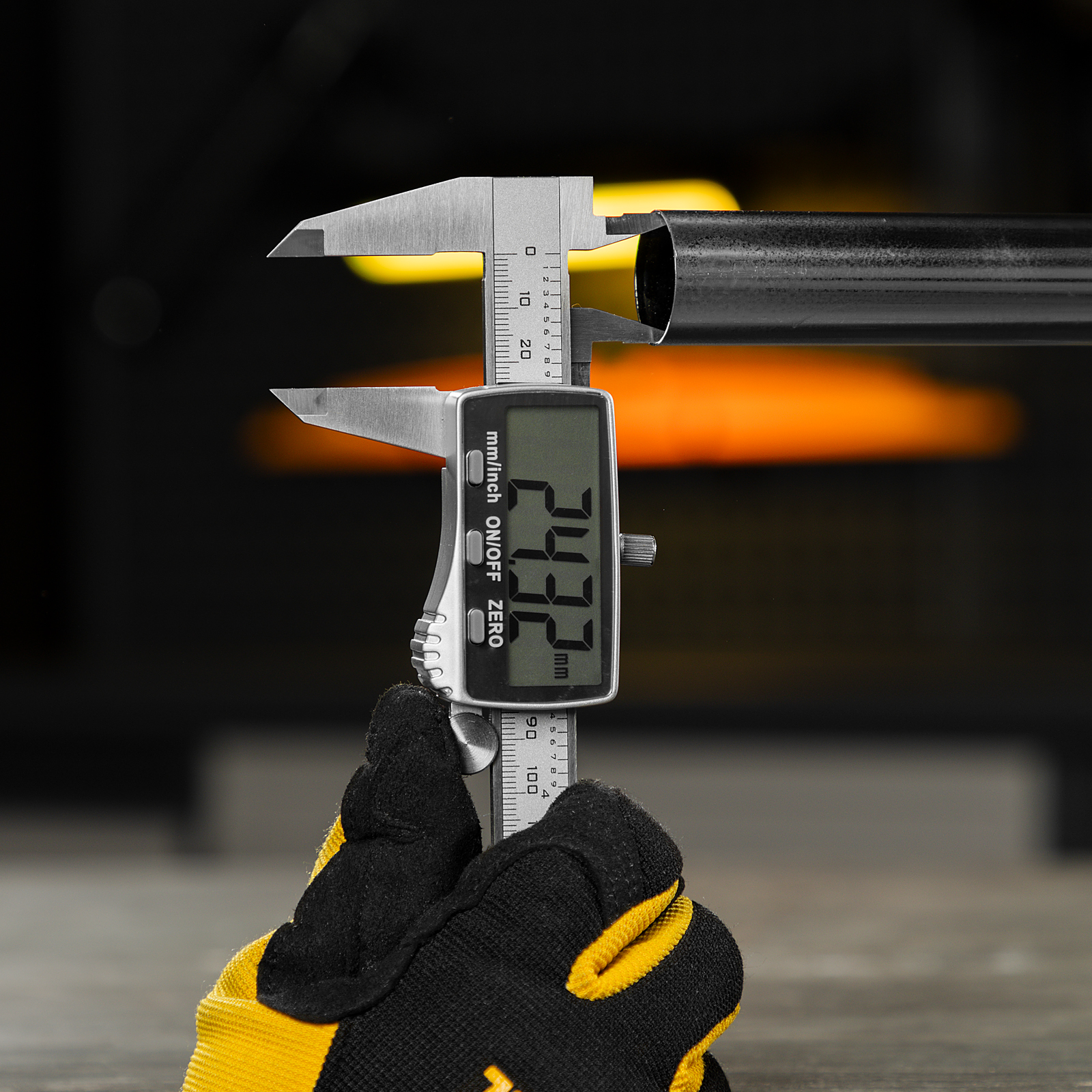 Электронный штангенциркуль Denzel 31614 со шкалой длиной 150 мм, с большим дисплеем и глубиномером, позволяет определять внутренние и внешние размеры различных деталей. Цена деления составляет 0,01 мм. Штангенциркуль позволяет получать результаты высокой точности: погрешность составляет ±0,02 мм при измерении размеров до 100 мм, и ±0,03 мм — до 150 мм. Двустороннее положение губок облегчает проведение работ. Инструмент пригодится на производстве, в мастерской, гараже, а также будет полезен в быту.