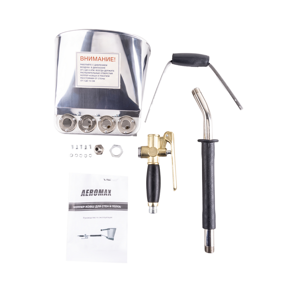 Штукатурный хоппер ковш стеновой AEROMAX WAH-02 предназначен для быстрого нанесения штукатурных растворов на стены и вертикальные поверхности, работа осуществляется через компрессор с постоянным давлением. Благодаря технологии нанесения штукатурки с помощью хоппер ковша, расход смеси значительно сокращается, за счет улучшения адгезии раствора и нанесения его тонким слоем, что уменьшает затраты на используемые материалы. К тому же, значительно ускоряется и облегчается рабочий процесс. Эксплуатация не требует особых навыков или квалификации. В процессе работы возможно внесение в раствор добавок и фибры. Инструмент подключается к воздушному компрессору с объемом ресивера 50-100 л и производительностью не менее 300 л/мин с помощью шланга с оптимальным внутренним диаметром в 14 мм, фиксируемым хомутами или муфтами GEKA обеспечивающими минимальные потери по расходу воздуха. Изделие имеет оптимальную для быстрой работы емкость ковша из нержавеющей стали в 3,5 л. Ковш оснащен 4-мя интегрированными соплами диаметром 20 мм которые обеспечиваю беспрепятственный выброс смеси при помощи сжатого воздуха. Прорезиненная рукоятка с удобным хватом и большой диаметр штанги обеспечивают лучшее удержание и меньшую утомляемость. Скорость обработки поверхностей при соблюдении всех требований с помощью данной технологии составляет до 30-50 кв. метров в час.