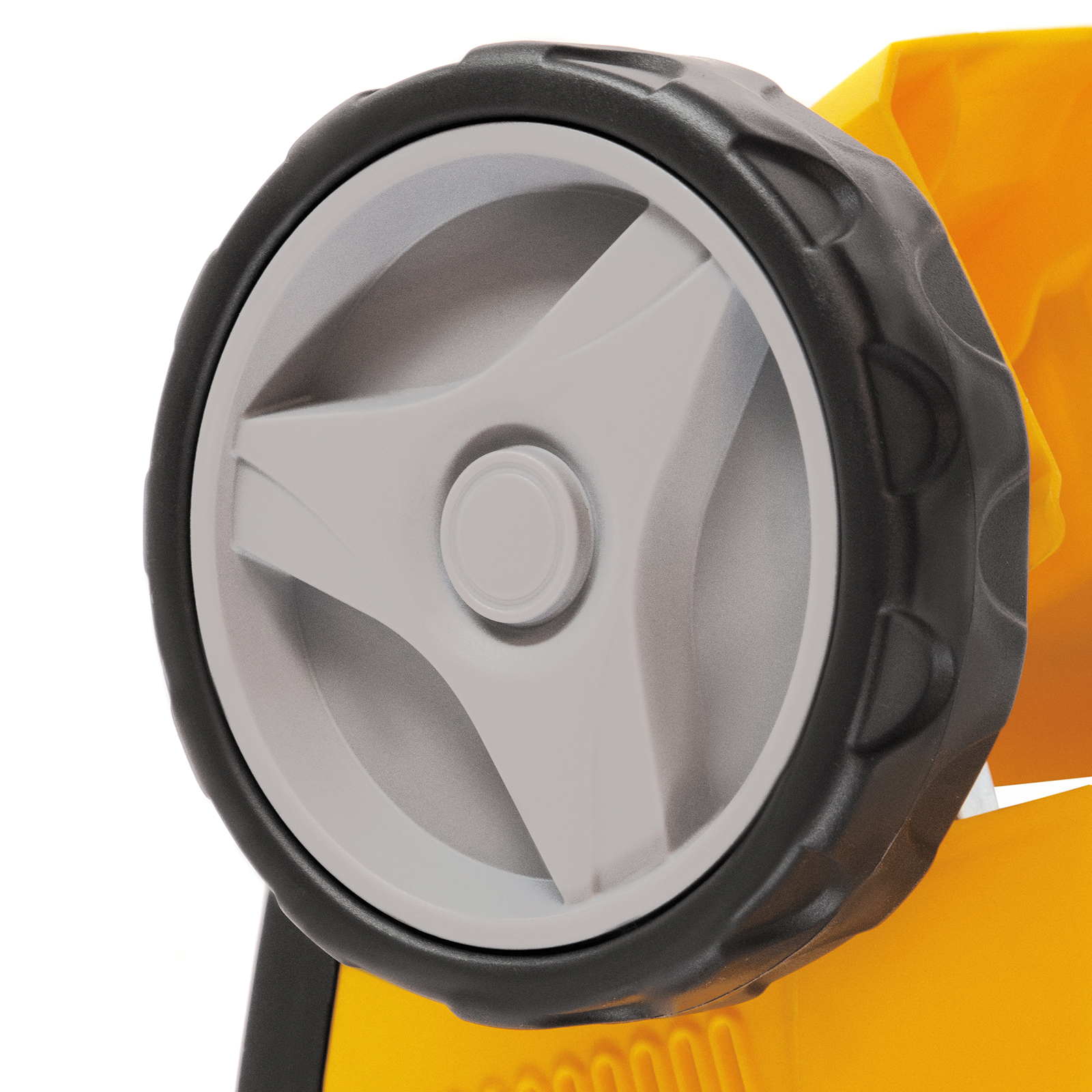 - Маневренность — скарификатор-аэратор весит всего 10 кг, а колеса размером 160/140 см облегчают передвижение по участку со сложным грунтом.