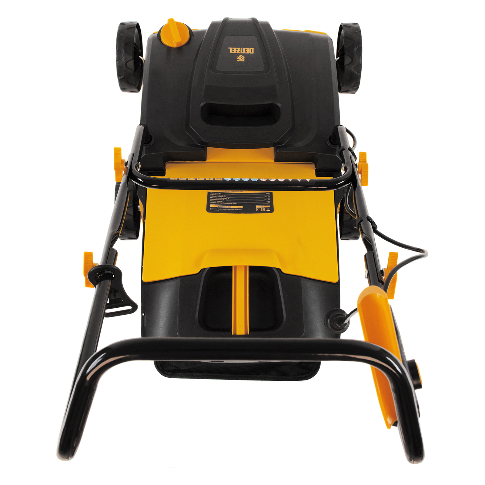 - Удобное хранение и транспортировка — рукоятка легко складывается, поэтому техника не занимает много места.