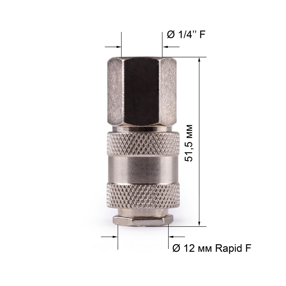 Соединитель Rapid F «мама» — внутренняя резьба 1/4" подходит для быстрого подключения воздушных шлангов и пневмоинструмента и обеспечивает качественное и герметичное соединение.