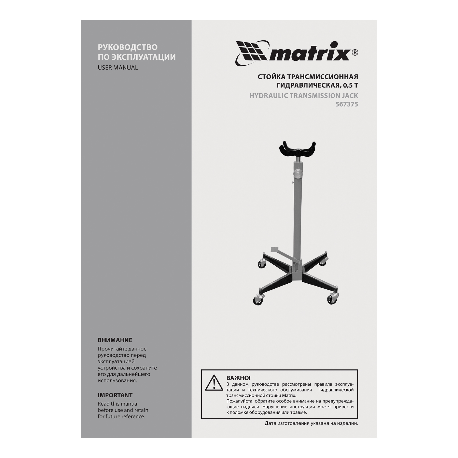 Стойка трансмиссионная гидравлическая, 0.5 т, H подъема 1130-1945 мм Matrix в Москве