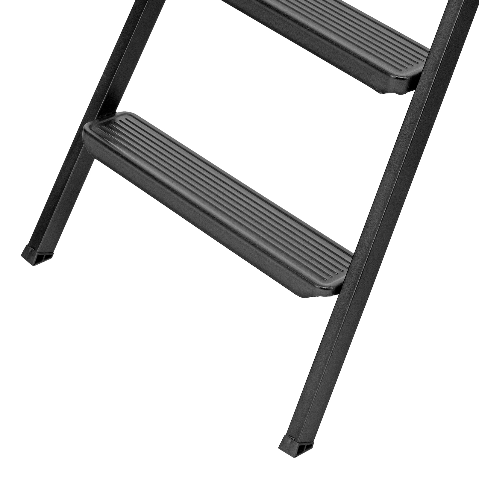 • Долговечность — антрацитовое покрытие порошковой эмалью защищает стремянку от коррозии.