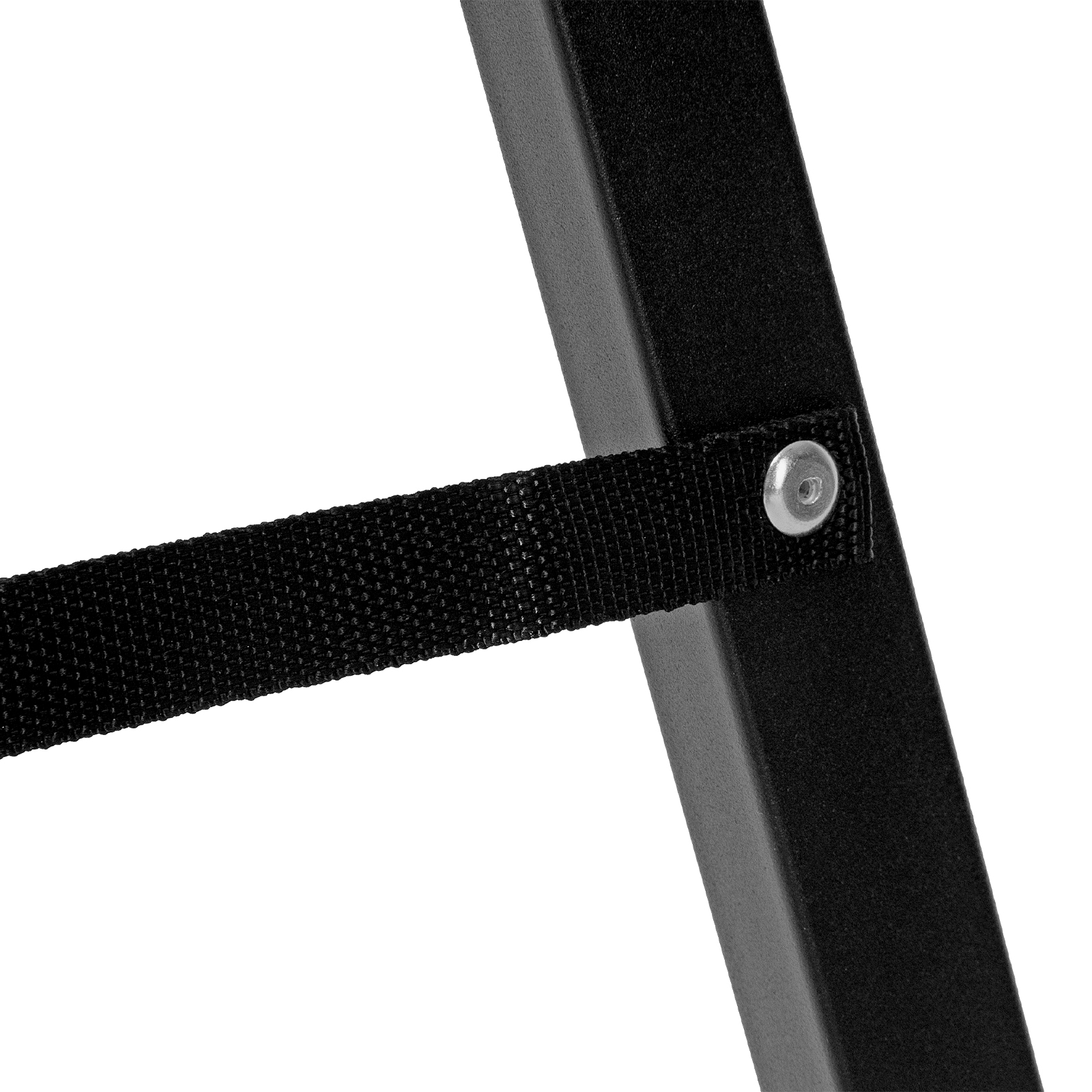 • Надежная фиксация в рабочем положении — на верхней площадке имеются специальные зацепы, опоры дополнительно удерживаются страховочными лентами.