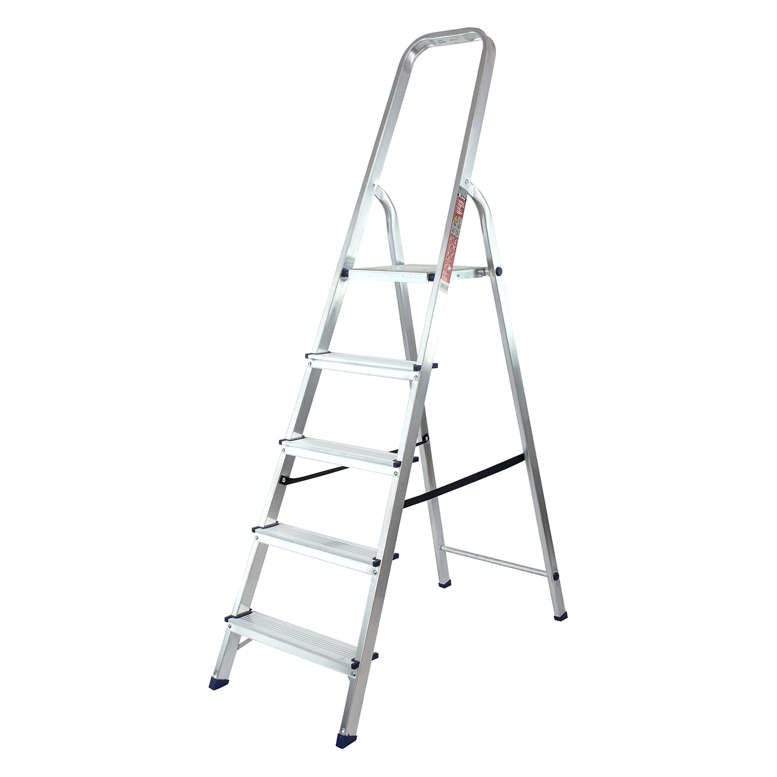 Алюминиевая стремянка MTX 9771477 с 5 ступенями имеет усиленную конструкцию и предназначена для выполнения работ на высоте, превышающей человеческий рост. Высокая дуга безопасности обеспечивает устойчивое положение пользователя. Площадка находится на высоте 102,1 см от опорной поверхности, рабочая высота стремянки составляет 302,1 см (при среднем росте пользователя 170 см). Стремянка пригодится во время строительных и ремонтных работ, позволит без лишних усилий повесить картину или шторы, покрасить стену, достать нужную вещь с антресолей или верхней полки шкафа, а также решить много других бытовых задач.