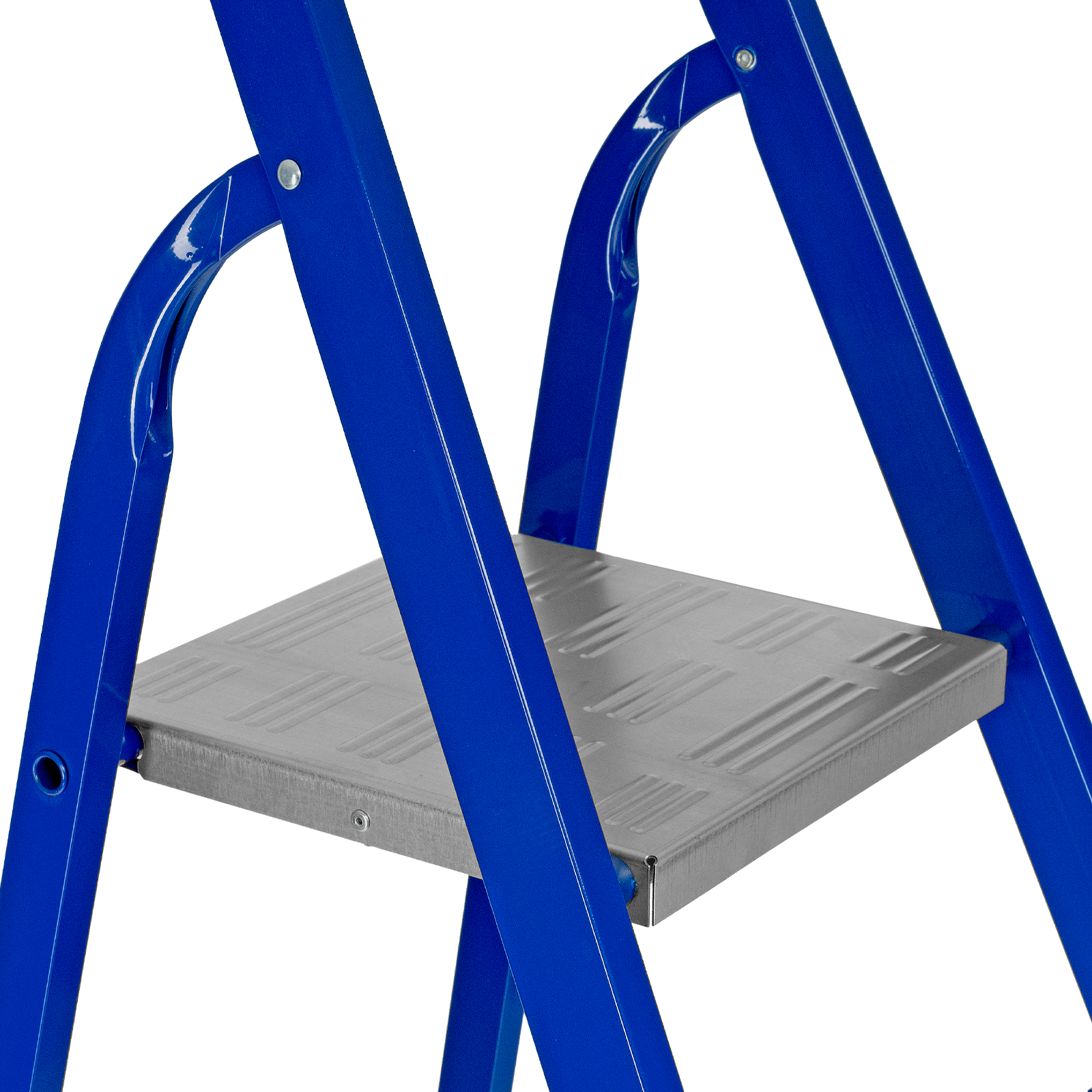 - Комфортная работа — стремянка имеет широкие ступени и высокую дугу безопасности.
