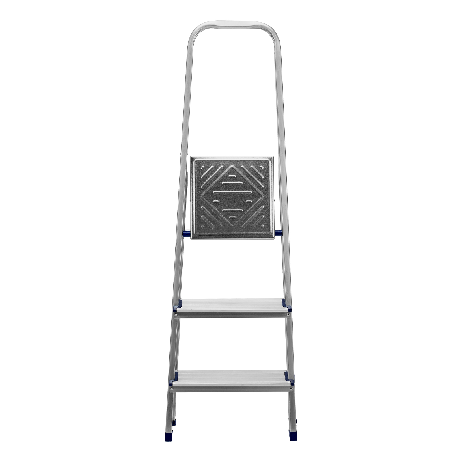 - Надежность — рама из прямоугольного алюминиевого профиля выдерживает нагрузку до 150 кг, широкие ступени закреплены заклепками.