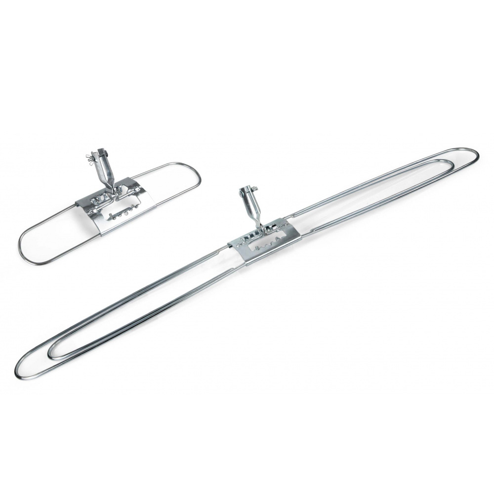 Раскладная металлическая рамка с хромированным держателем с металлическим креплением. Используется совместно с мопами для сухой уборки с карманами. Обеспечивает надежное крепление мопа, а также быстроту и удобство его смены. Тип крепления палки под скобу.